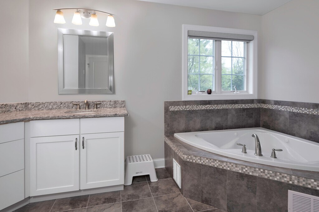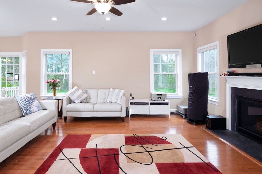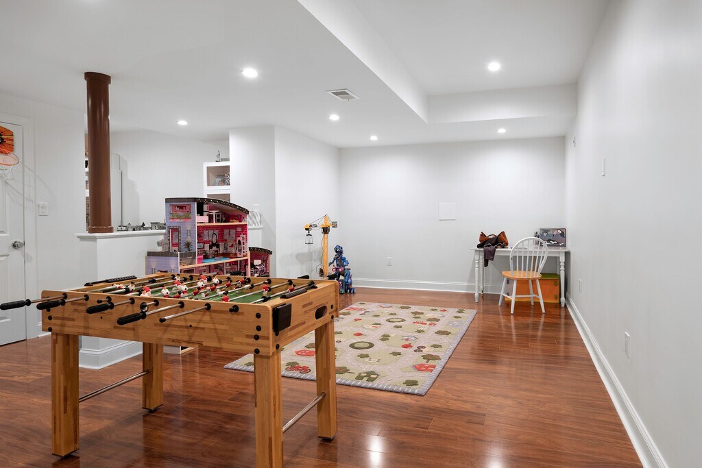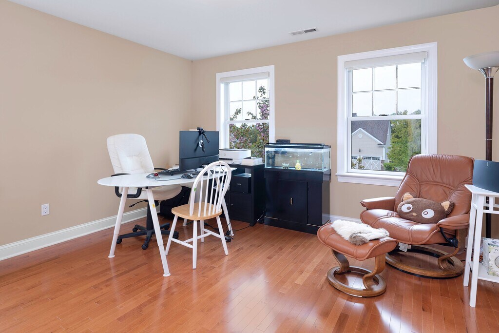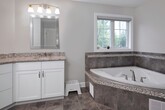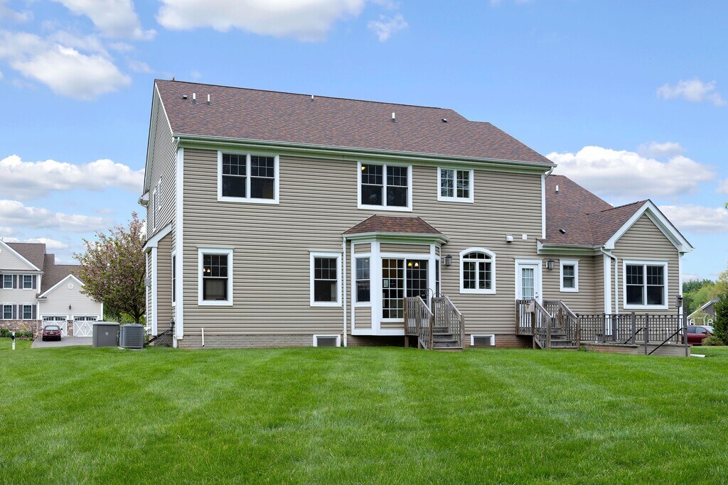 The handsome homes of East Country Estates were built in 2015 to meet the highest standards of comfort, including this stone-front Colonial on a cul de sac street right around the corner from Montgomery Middle Schools, part of the top-rated public school system. The house remains as spotless and stylish as day one, especially the kitchen with gleaming glass tile, stainless steel appliances and a sparkling black granite island that culminates in a circular seating area. The openly adjoining family room has an easy gas fireplace and a wide passage into the living room for added flexibility when entertaining. More casual space for hanging out and having fun is found downstairs in the fully finished, walk-out basement complete with a full bath and tons of open and closed storage. The first of 5 bedrooms is located on the main level with a bath en suite. The private corner location makes it ideal for guests or as a home office. Handsome wainscoting, an iron-detailed staircase and continuous hardwood floors lead the way to another suite, 2 bedrooms, a hall bath and the main suite. A tray ceiling adds a touch of grandeur to the main bedroom with a dressing area hosting 2 naturally lit walk-in closets. The gray and white bath, a haven of rejuvenation with a big corner tub, is clean as can be.