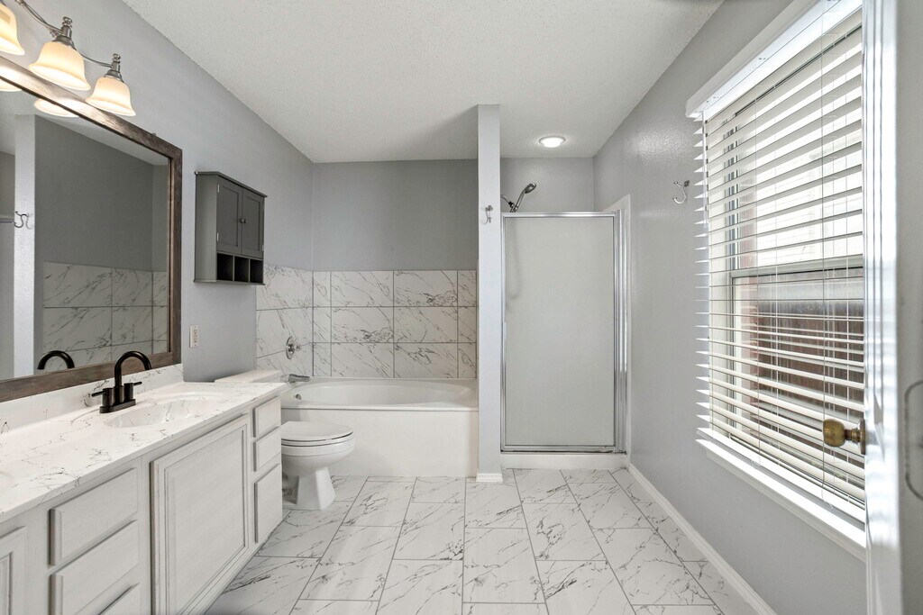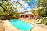 Located in the heart of Stone Oak, this magnificent home with 4 bedrooms and 2.5 bathrooms, with private office off primary bedroom, huge media/family room and INGROUND POOL, offers the perfect blend of comfort, convenience and style. Updates galore!! Freshly painted kitchen and bathroom cabinets, and walls throughout the house, new flooring in main bathroom and new carpets on upstairs floor. Open floor plan and lots of natural light. Primary bedroom and bathroom in main level, and 3 large size bedrooms, full bath and media room upstairs. Pool is serviced weekly by owner. XEROSCAPE landscaping makes it easy to maintain. Easy access to main highways, close to A+ rated NEISD schools and restaurants and shopping. Solar panels help to cut the electricity in half!!! Schedule an appointment today and move-in tomorrow