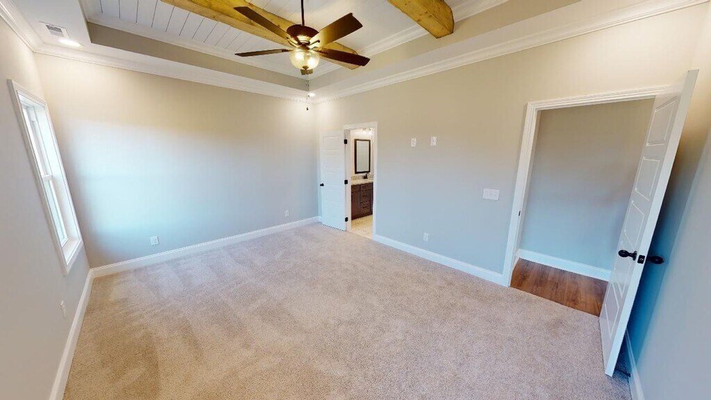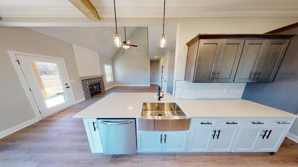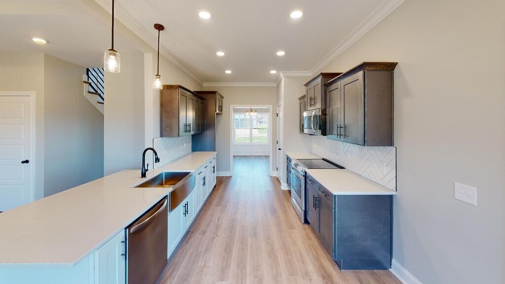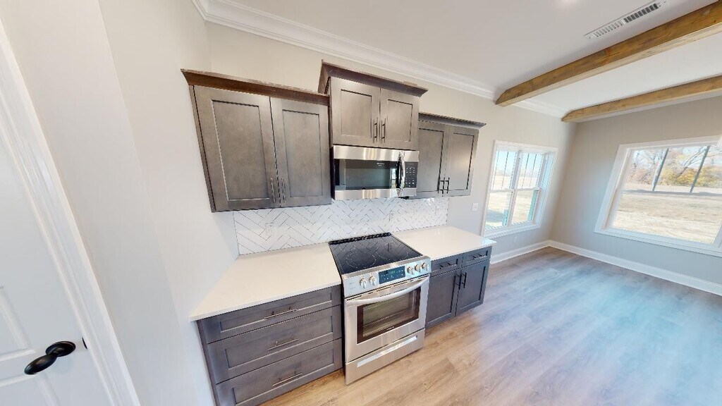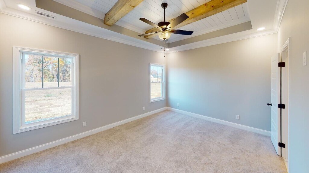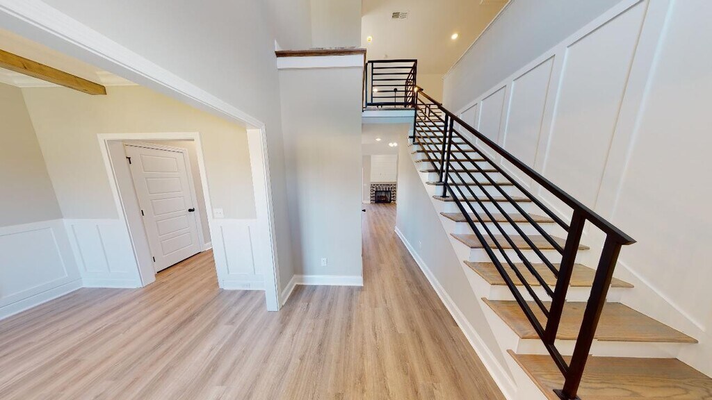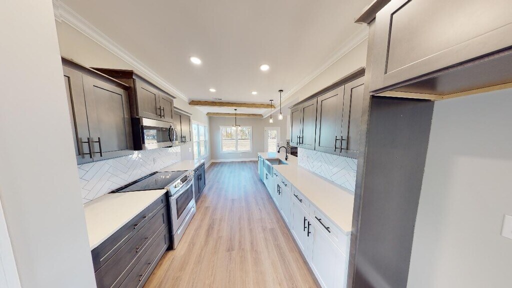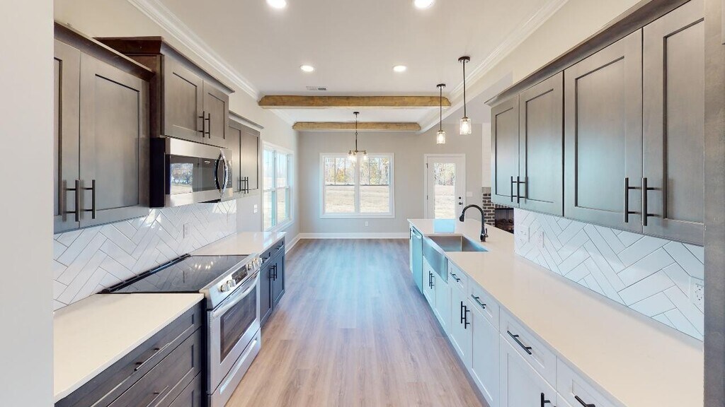Beautiful modern farmhouse with tons of gorgeous finishes! The master bedroom features a barn door leading to a bathroom with an extended shower and rainfall shower head! Beautiful beams on the masters ceiling as well as coffered ceilings in the dining room. Amazing oak tread stairs with modern black railings, tongue and groove ceilings on the front and back porch, as well as quartz counters in the kitchen! Large 4th bedroom upstairs could also be considered a bonus/rec room! This house is one of a kind with all the gorgeous details to make it a home!