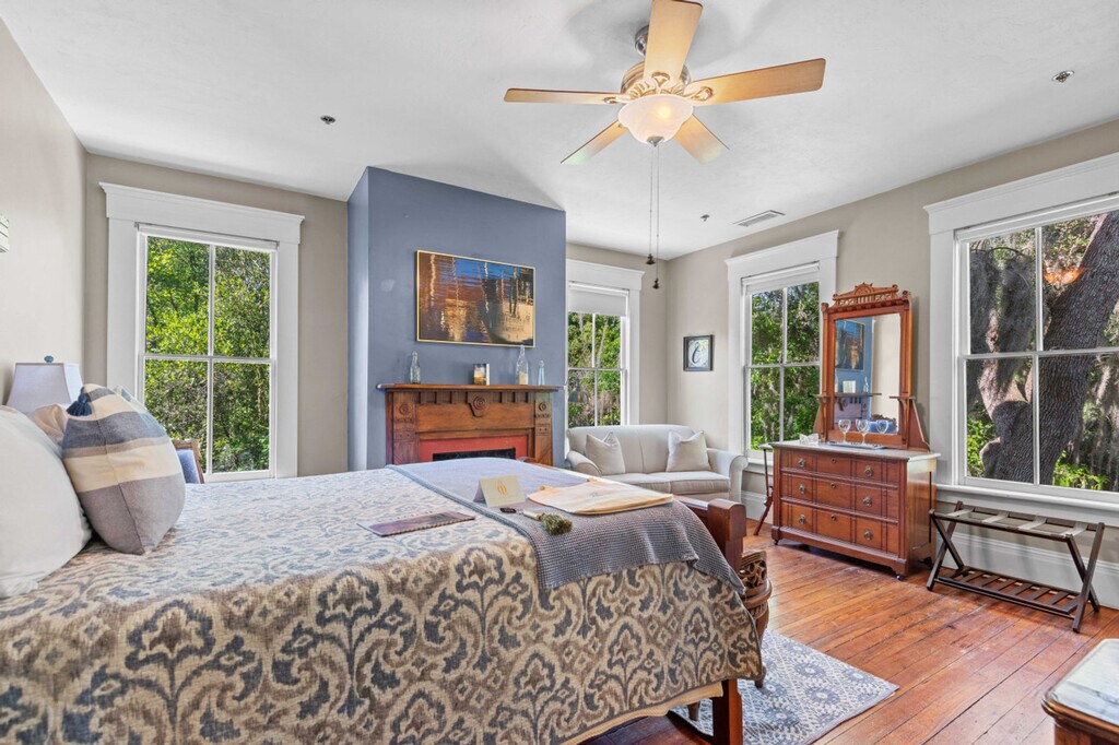 Welcome to Grand Laurel Oak Estate, Gainesville’s premiere private retreat blending historic elegance with modern luxury. This 5-bedroom, 5.5-bath home invites your group to live in comfort and style. Feel at home whether you’re in town for a family reunion, University of Florida graduation, or a corporate off-site. The large living spaces mean your group can spread out. There are two distinct living rooms, perfect for game nights, quiet reading, or catching up by the fireplace. A gourmet kitchen with high-end appliances awaits your chefs, and a grand dining room sets the stage for special meals together. Each of the 5 bedrooms is a private suite featuring its own full bathroom, premium linens, and a fireplace in five of the suites. Start your morning on one of the two wraparound porches, sipping coffee on a cozy swing as the neighborhood wakes up. In the evening, step out back to the expansive patio draped in twinkling party lights, an enchanting setting for dinners or celebrations. With seating for everyone under the stars, you can grill out, share stories, and make memories. Leave the cars in the free parking area and explore downtown Gainesville on foot; restaurants, cafes, and shops are just a few blocks away. The University of Florida and stadium are a 5-minute drive, making game days or campus visits a breeze. Despite being in the heart of town, the estate sits on a lush, fenced property, offering peace and privacy behind its oak-shaded gardens. Before you arrive, you will be asked to complete guest verification through third-party provider Truvi. This is done to ensure we are keeping up-to-date with short-term rental regulations as well as providing both our guests and our properties with extra protection. Truvi will contact you via email and/or text to complete the verification. Please do so prior to arriving at the property to enable a quick and easy check-in process. [SI]