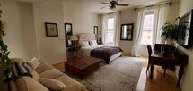 A very special unit! A tri-level apartment with a spacious and bright interior. 1st floor- Spacious bedroom with its own full bath with a tub. 2nd floor- Fully equipped kitchen, living area, and a private balcony. 3rd floor- Spacious bedroom, full bathroom with a tub, closets. Laundry machines. Central air and heat. Washer and dryer in unit. Cable and internet ready. Private entrance. Parking available, a few steps from the apartment, for a reduced rate of $150/month.