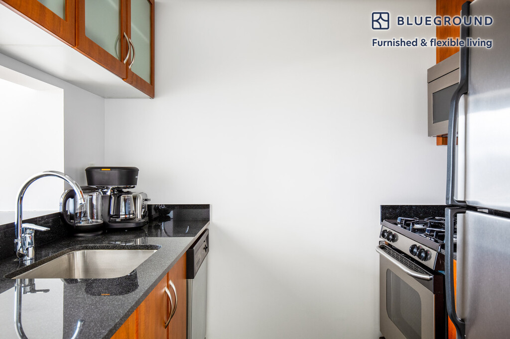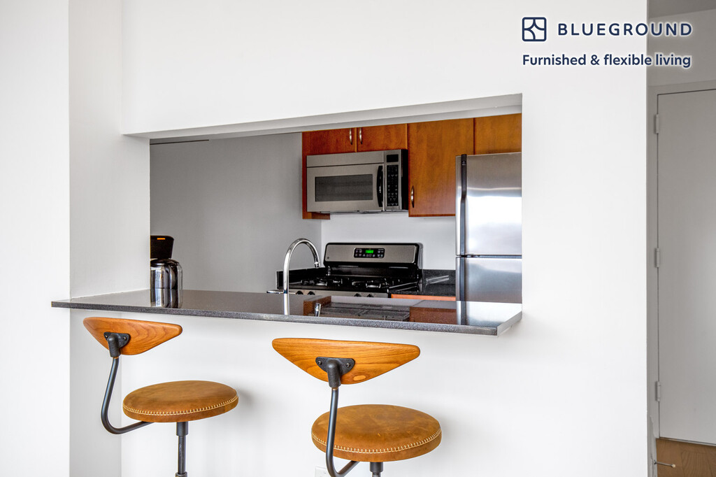 Discover the best of New York, with this one bedroom apartment in Kips Bay with high floor views over the city. It’ll be easy to simply show up and start living in this furnished apartment with its fully equipped kitchen, living room, and our dedicated, on-the-ground support. (ID #NYC585) The advertised rate of $5,748/month is the lowest available price, based on a 10 month(s) and 29 day(s) stay with a move-in date of September 5, 2026. Rates vary depending on the duration of stay, season, and other parameters. For exact pricing and additional pricing components, please visit our website and enter your desired move-in and move-out dates. The rate is applicable when billed upfront; it can be higher if billed in multiple payments. Brokers are welcome to reach out. Were you looking for an unfurnished lease? Try Blueground instead and upgrade from unfurnished to furnished living: - Furnished at rates comparable to unfurnished - No setup or furniture costs - save thousands - Move-in ready - save time, just bring your suitcase Designed with you in mind Gorgeous furniture, fully equipped kitchen, smart TV, and a premium wireless speaker are just a few of the amenities you’ll find inside this one bedroom apartment. Ideally located in New York, you’ll find a lot to love outside as well. When you’re ready to relax, you’ll be happy to discover every Blueground bedroom comes with superior quality mattresses, fully stocked linens, and cozy towels. We handle everything so you can simply show up and start living. Sleeping arrangements Queen Bed, 63in/160cm Amenities Building amenities unique to this one bedroom apartment include an on-site: - Doorman - Dryer in building - Elevator - Washing machine in building - Lounge - Playground - Playroom Arrival and ongoing support The entire apartment is yours to enjoy! Throughout your stay, you’ll have access to our Client Experience team through the Blueground App. You can schedule additional cleanings, submit maintenance requests, and view our neighborhood recommendations with just a few taps. We’ll share all details upon confirmation of your stay. Ideally Located This furnished property is situated in Kips Bay. Stretching from the East River to Lexington Avenue, the peaceful neighborhood offers convenience and easy access to the rest of the city. Several hospitals are located here, making it a hub for medical care. Kips Bay offers dining options for every budget as well as numerous cinemas and fitness centers. During the weekends, locals stroll alongside the water, take the water taxi to another borough, or hang out in one of the parks, such as Bellevue South. From here, Rockefeller Center is only 20 minutes away by subway. Other things to note Building amenities may have an extra cost. This Blueground apartment has flexible lease options, allowing you to book it for one month, a year, or more. Brokes CYOF. We take great pride in ensuring every photo displayed is shot in our own units with our actual furnishings. That said, we regularly refresh our decor and furniture arrangement, which may differ from what’s pictured. [SI]