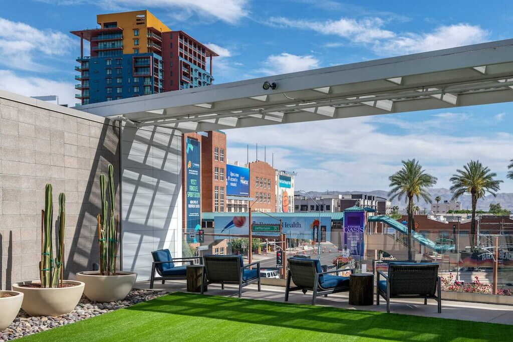 Feel at home in this modern and bright condo in Phoenix’s entertainment district. This condo is suitable for a family, group of friends, or business travelers and has all the amenities necessary to enjoy your stay. Great amenities include a fitness center, co-working and conference room, game room, courtyard, dog park and parlor, indoor and outdoor lounge, swimming pool, hot tub, and bike storage. Valet parking is available for $25/day or $350/month. A pet fee between $100 and $300 will be collected separately, based on stay length. All pets must be on a leash when outside on the property. Adeline is centrally located in the heart of entertainment, within walking distance to Fry’s Food and Drug, the Mortgage Matchup Center, Chase Field, the Phoenix Symphony, and Heritage Square. With sophisticated dining, shopping, and entertainment experiences just blocks away, Adeline offers a convenient, big-city lifestyle in the center of diverse culture and modern comfort. The property is right next to the Valley Metro light rail system, making it easy to explore the rest of the Valley. Adeline offers excellent walkability with shops, dining, and entertainment just steps away. Fry’s Food & Drug, Chase Field, and the Phoenix Symphony are all within a short walk. The property is next to the Valley Metro Light Rail, providing easy access throughout Phoenix and the surrounding Valley. Taxis, rideshares, and scooter rentals are also readily available in the area. Smoking of any kind is not permitted within or outside of our suites, including balconies, patios, or common and/or parking areas. Any sign of smoking is a violation of our stay agreement, which may result in immediate termination and recovery fees beginning at $500. A $200 penalty applies for removing smoke detectors or for lost key fobs. No weapons or drugs are allowed; police will be called for violating this rule. Guests must agree not to disturb neighbors at any time during the stay and must observe quiet hours from 9pm-8am each day. The home is proactively monitored with decibel sensors for compliance with this noise policy. Check-in is at 4 PM and check-out is at 11 AM, with a $75/hour late fee. No outside guests are allowed without permission. There is a maximum of 2 pets allowed (40lbs combined), excluding Pit Bulls and Bull Mastiffs (or similar breeds). Guests must provide a copy of their official government-issued photo ID, confirm their contact information, and pass through our verification portal. In some instances, a criminal background check may be required. The minimum age requirement for the primary person booking is 22 years old. Registration Number: STR-2024-002926 [SI]
