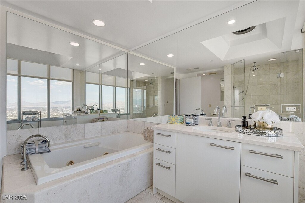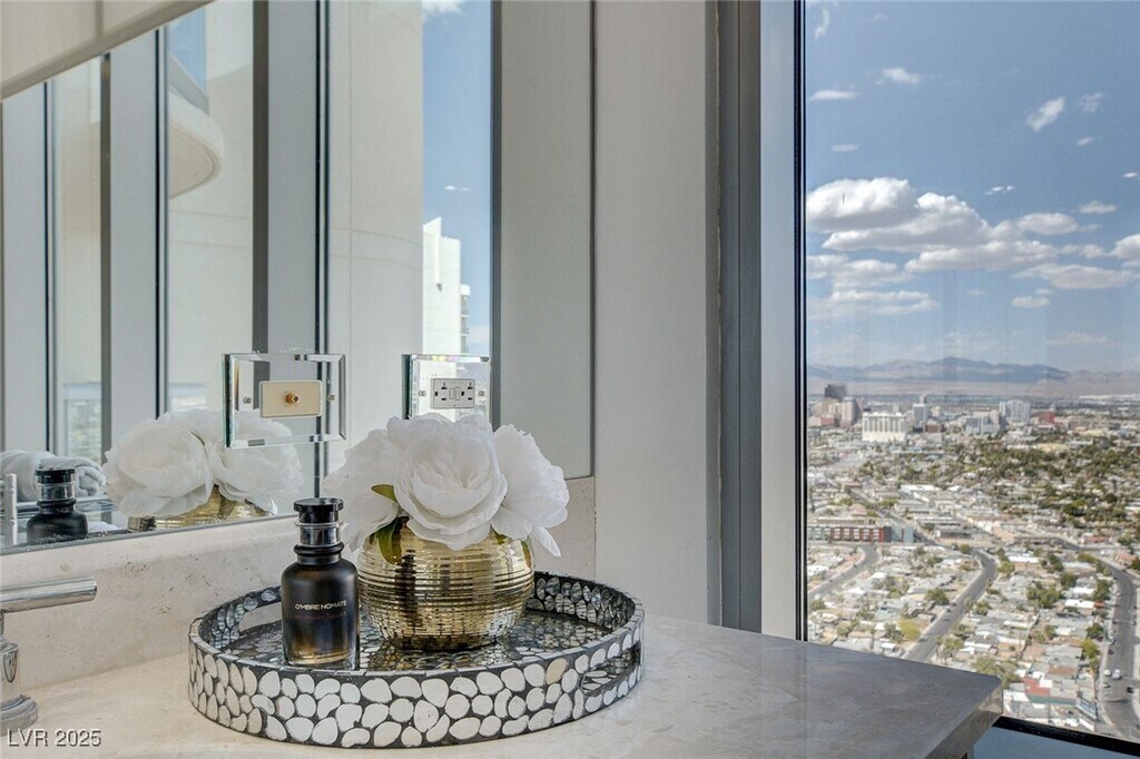 A Rare One-of-a-Kind Turnberry Towers Luxury Condo, located on the 33rd floor with views of the spectacular strip city and mountain from every angle. There is no other like it! This fully furnished, designer-upgraded 1,399 sq. ft. residence features two beautifully furnished private balconies for true outdoor living, a new custom fireplace, and an upgraded chef’s kitchen built to impress. The spa-inspired primary suite features its own balcony, a Jacuzzi tub, and an oversized walk-in shower. Resort-style amenities complete the experience, including a cascading pool and spa, tennis & pickleball courts, a putting green, a state-of-the-art fitness center, a dog park, a 24-hour concierge, and valet parking. For peace of mind, enjoy 24-hour guard-gated security. This is a true turnkey masterpiece in the heart of Las Vegas, just bring your toothbrush and clothes.