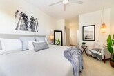AVAILABLE NOW: FULLY-FURNISHED MONTHLY BEACH STAY Extra-Spacious Beachside! 1BR | 1BA | 865 SF | No Shared Walls | Lush + Quiet | Side Ocean Views Enjoy effortless, move-in-ready beachside living in this beautifully remodeled and fully-furnished condo on iconic Ocean Avenue in Santa Monica — just steps to the beach and Main Street. This northwest-facing unit offers no shared walls, vaulted ceilings, and abundant natural light. A wall of windows frames a peaceful side ocean view with palms and bamboo, filling the space with a lush, tranquil energy. Highlights & Amenities Extra-large 865 sq. ft. with high ceilings and natural light Fully remodeled and designer furnished — modern coastal aesthetic No shared walls for quiet, private living Side ocean view framed by palms and bamboo from living room windows Built-in 15' window seat with storage — perfect for reading, lounging, or sunsets Luxe West Elm King bed with Casper Wave mattress Smart 65” and 50” TVs in living room and bedroom Stocked kitchen with high-end stainless steel appliances, Keurig with pods, cookware, dishes, utensils, and glassware Dedicated workspace with desk, chair, keyboard, mouse and monitor Ideal for remote workers, relocation professionals, film crew, medical contracts, insurance placements In-unit washer/dryer combo Spacious walk-in closet with built-ins Hotel-style split bathroom with tub/shower combo and modern vanity Gated garage parking (1 vehicle) + 1 street parking permit All utilities included (electricity, gas, water, trash) Fiber internet ready (tenant chooses speed up to 7 gbps and pays monthly) Small, quiet elevator building Small dogs welcome ($50 each per month) Low windowsills may not be safe for toddlers/small children. Shoes-off home | Smoke-free Steps from Ocean Park Beach and Main Street cafés, yoga studios, and boutiques Available now | 1-month minimum, extended stays welcome