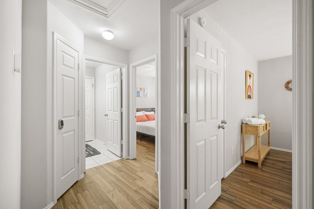 Welcome to your chic home away from home! Our beautifully designed space is perfect for families or remote workers, blending modern comfort with a touch of style. Relax in the airy living room, enjoy meals at the spacious dining table, and retreat to cozy bedrooms. The fully equipped kitchen makes cooking easy. We provide kid-friendly essentials like bassinet, highchair and toys to ensure a stress-free stay. Located in a prime spot, it's the perfect place for unforgettable family adventures! Our charming one-story house features a bright open floor plan with tile floor throughout. It has 3 bedrooms, 2 bath, and 1 flex room. The house was designed and fully furnished with new furniture, beautiful decoration, high-speed internet, smart TVs, Washer/Dryer, designated working area with raise desk and children play space to make your stay effortlessly enjoyable. The primary bedroom features one queen bed and one double bed, double-sink in master bath, walk-in shower, garden tub and is ensuite with a walk-in closet. The 2nd and 3rd guest room each has one queen size bed with walk-in closet. The flex room has one twin size daybed with twin trundle/pull out bed for extra sleepers. It is close to major highways Hwy 99 & I-10, hospital, shopping, eateries, and entertainment centers. - 4 minutes to Walmart Super Center, Kroger, Restaurants - 7 minutes to Grand Parkway Park & Ride, Katy Asian Town (H-mart, Boba Tea, eateries) - 12 minutes to Memorial Hermann Katy Hospital - 12 minutes to Typhoon Texas Water Park Houston - 13 minutes to Katy Mills shopping mall and Costco AIRPORTS • George Bush Intercontinental Airport | 40 miles • William P. Hobby Airport | 37 miles Local Area Amenities: • Katy Asian Town •Typhoon Texas Waterpark • Mason Creek South Hike and Bike Trail • Katy Mills Shopping Mall • Cullen Park • Bear Creek Pioneers Park • Nottingham Country Greenbelt Park • Houston Community College • The Boardwalk at Towne Lake • LaCenterra at Cinco Ranch Check out our booking website: "emmastays" "dot" "us" or find us on Airbnb.