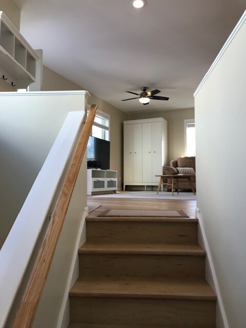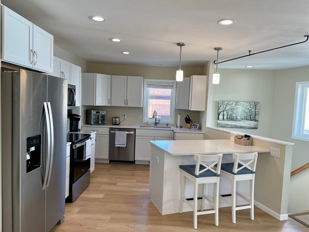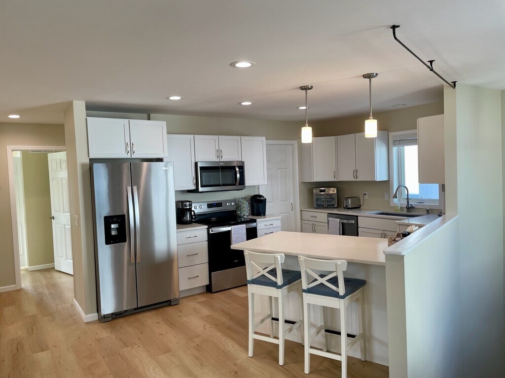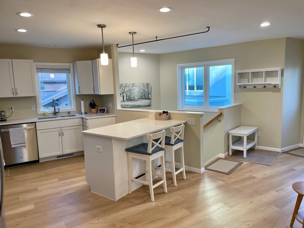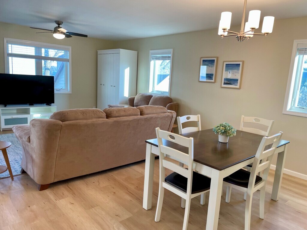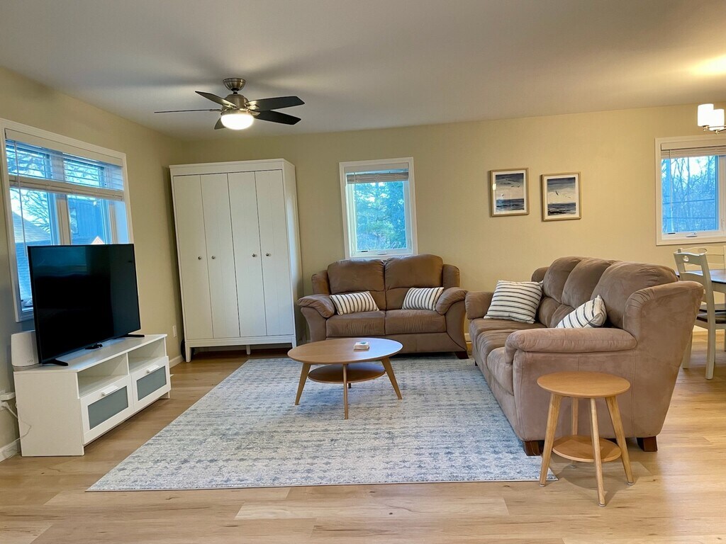 Todd and Ann's main house and guest apartment were built in 2022, and we are excited to welcome guests to our waterfront property. The apartment is detached from the main house (except for a walkway deck connecting the two on the second floor) and has its own dedicated furnace and central air conditioner. The apartment is furnished, and all utilities are included in the monthly rent. Guests will enjoy partial Lake Mendota views from the guest apartment and will have access to Lake Mendota, our waterfront property, kayaks, paddle boards, and our dock. Our waterfront property offers a variety of Lake Mendota activities such as kayaking, paddle boarding, fishing, and swimming. We are happy to store renters watercraft, such as kayaks or paddle boards, on our property for renters use. In the winter there are a variety of activities you will have direct access to, including an ice rink, cross country skiing, and ice fishing on Lake Mendota. A Nature Conservancy is also located directly across the street from the guest apartment. There are numerous amenities within walking distance of the apartment including restaurants, bars, a gym, public transportation, Marshall Park, coffee shops, and Lakeview Park. The UW-campus and a variety of Madison amenities are only a short drive. The apartment is located on a quiet, family friendly dead-end road in Middleton. All apartment residents need to conform to the quiet, family friendly residential nature of the Middleton Beach Road community. Any activities or behaviors that are not typical of a family friendly residential neighborhood such as excessive noise or parties are not allowed. The apartment is 1,095 square feet with two bedrooms (one queen bed and one king bed), one full bathroom, a full kitchen, quartz countertops, a high efficiency washer and dryer, deck, dining, and living rooms. Both bedrooms have a dedicated working space, and one bedroom has a stand-up desk, printer, and TV. The apartment also has free high speed wi-fi, a 55" smart TV in the living room and 32" smart TV in the bedroom. The apartment is located above our heated garage and guests will have dedicated, private parking in the heated garage for one vehicle and parking for one additional vehicle in the driveway. Guests will have private storage (shelves and closets) in the garage area, access to a garage 1/2 bathroom, and a private walk-in storage closet in the garage area. Guests can access the apartment through the single car garage door or the main apartment access door with a smart keypad lock. There is a paver walkway that extends from the driveway to the main apartment access door. Apartment rental includes stainless steel appliances, furniture, beds, bedding, vacuum cleaner, plates, bowls, pots, pans, cooking utensils, cutlery, silverware, glassware, coffee mugs, toaster, air fryer, coffee makers, and a blender. Pets are also welcome at no charge. The apartment can accommodate a maximum of four people (one family) and two vehicles. It is ideal for one family, traveling professionals, etc. The apartment is available beginning September 11, 2025. For additional information about our apartment rental or to discuss rental options, please contact Todd. A rental application is required.