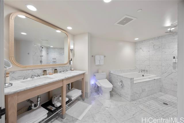 Available fully furnished 1 bedroom, 2 bathroom unit on the 11th floor in KA LAI WAIKIKI luxury hotel. [Long term lease - 12 MONTHS MINIMUM required by building]. ** Appointments only by email. PLEASE NO PHONE CALLS. Email for inquiries. Monday to Fridays only. ** Opportunity to live at the 5-star hotel. Convenient location within walking distance of Waikiki Beach and shopping. Unit include full kitchen with built-in refrigerator/freezer, cooktop, wine cooler, king bed, sofa bed, blackout curtains, carpet floors (tile in bathroom and kitchen), washer/dryer, walk in shower, tub, toilet with washlet, central ac, walk-in closet, and lanai with ocean views. Rent includes: Water/sewer, cable tv, wifi internet, & tax. Renter pays electricity. Parking not included, but monthly valet parking is available from the building. Building hotel amenities include 24/7 security, concierge, exercise room, infinity pool, spa, meeting room and restaurants. No pets, No smoking, No short term, No subleasing allowed. Applicant must physically see unit. No virtual tours. Renters insurance required. Building undergoing renovations starting in early 2026.