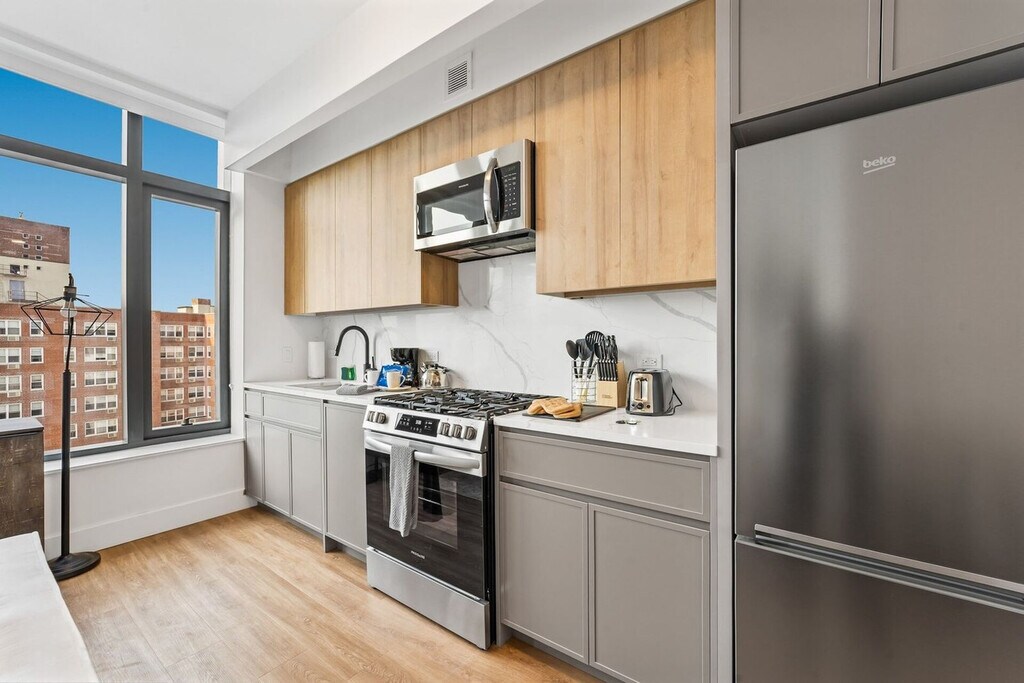 The advertised rate of $4,100/month is the lowest available price, based on a 1 month(s) and 2 day(s) stay with a move-in date of February 18, 2026. Rates vary depending on the duration of stay, season, and other parameters. For exact pricing and additional pricing components, please visit our website and enter your desired move-in and move-out dates. The rate is applicable when billed upfront; it can be higher if billed in multiple payments. Step into comfort and style in this fully furnished studio, located in Brooklyn’s vibrant Bath Beach and Bensonhurst neighborhoods. Set in a newly built 31-story high-rise, this modern space offers stunning water views. Feel at home in this studio that offers easy access to dining, shopping, and transit. This studio is equipped with top-of-the-line appliances, including a dishwasher, dryer, and washer, providing a seamless living experience. This space is perfect for hosting guests, working remotely, or simply relaxing. Building amenities include a stylish lounge to greet guests, a co-working lounge with private working banquettes and a conference area, a rooftop deck for outdoor work-from-home, a media and movie lounge, a billiards lounge, a state-of-the-art fitness center and yoga studio, a sunset lounge, and a 3rd-floor roof deck for lounging, barbecues, and dining with a view. Gym and lounge access are available for an additional fee. Parking is available through LAZ at a monthly rate. Nestled in the heart of the vibrant Bath Beach area of Brooklyn, you’ll experience a unique blend of neighborhood charm, seaside views, and convenient city access. Bath Beach is a welcoming community known for its peaceful, family-friendly atmosphere and easy access to some of Brooklyn’s best-kept secrets. The neighborhood is perfectly positioned between Coney Island and Bensonhurst, offering the chance to explore iconic attractions and experience the quieter, local charm of a seaside community. The nearby Shore Parkway offers beautiful waterfront views, ideal for a relaxing stroll or morning jog. Bensonhurst Park is just a short walk away. Bath Beach and nearby Bensonhurst are known for their diverse food scene. Along 86th Street, you’ll find shops, markets, and everything you need for a comfortable stay. The D subway line is a short walk away, taking you directly into Manhattan in under an hour. Local bus routes also offer easy access to surrounding neighborhoods. Check-in time is between 2 pm and 7 pm, and you will receive the key from the reception. For check-ins between 7 pm and 11 pm, we can still accommodate you for a fee. Smoking is strictly prohibited inside the property and the building management can impose fines of up to $500 for violations of this rule. A fee will be charged for missing or replacement keys, as well as incidents of lockout, according to the following schedule: Monday - Friday: 8:00 AM - 5:00 PM: $75 lockout fee, Monday - Friday: 4:00 PM - 8:00 PM: $150 lockout fee, Friday (4:00 PM) - Monday (8:00 AM): $200 lockout fee. For check-ins after 7 PM, we may be able to accommodate your request for an additional fee ($60-$150). One key fob is provided per booking. If an additional key fob is needed, it can be arranged with a refundable deposit of $250. No gatherings, events, or groups may use the amenities. Violation of this policy will result in the revocation of shared amenity access. [SI]