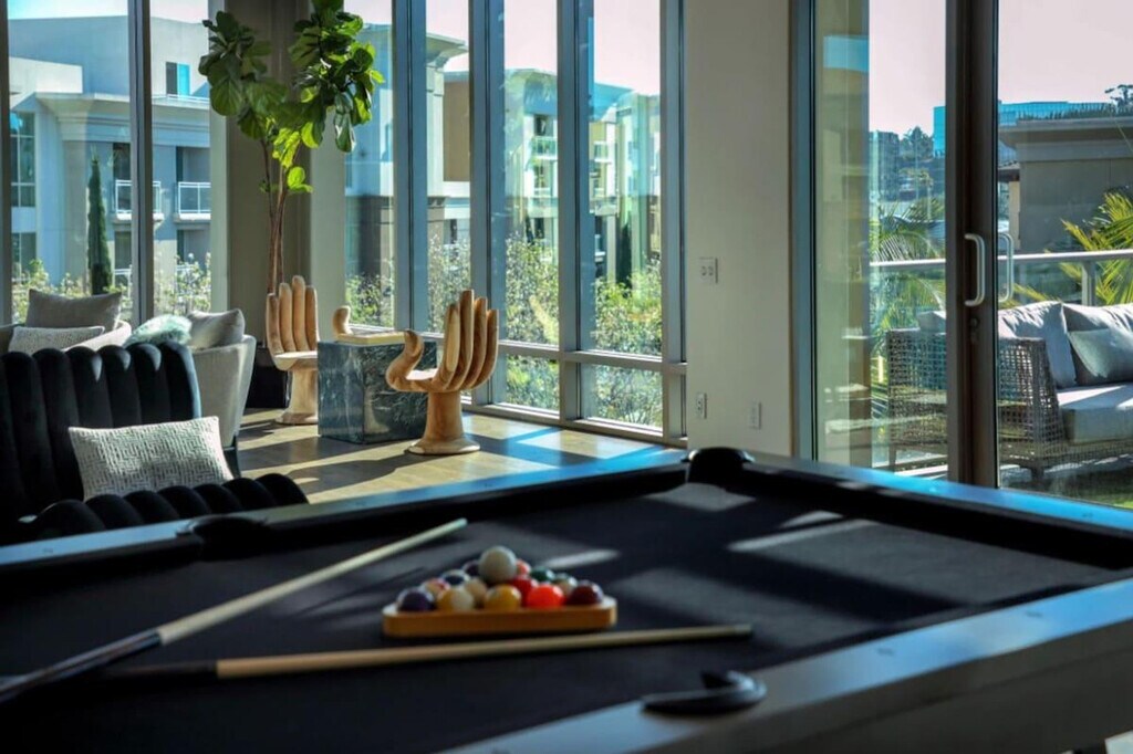 Feel at home in this upscale apartment near Old Town, offering modern living in the heart of Mission Valley. This award-winning apartment features modern finishes, sustainable features, and resort-style amenities. Designed for modern living, the community includes an open-air billiard lounge, media screening room, rooftop lounges with TVs, and a private event bar. Enjoy the convenience of spacious balconies or patios, generous storage, direct-access garages, and spa-style bathrooms with large soaking tubs. The fully equipped kitchen and 24-hour emergency maintenance add to the convenience. Pet-friendly amenities like a dog-washing station and bocce ball court cater to every member of the household. Energy-efficient touches, including EV charging stations and Energy Star® appliances, support a sustainable lifestyle without sacrificing comfort. Located in San Diego’s vibrant Mission Valley, this apartment is steps away from the 14-acre Civita Park, which offers amphitheaters, basketball courts, and a community garden for outdoor enjoyment. This community blends comfort, style, and convenience in a vibrant San Diego setting. [SI]