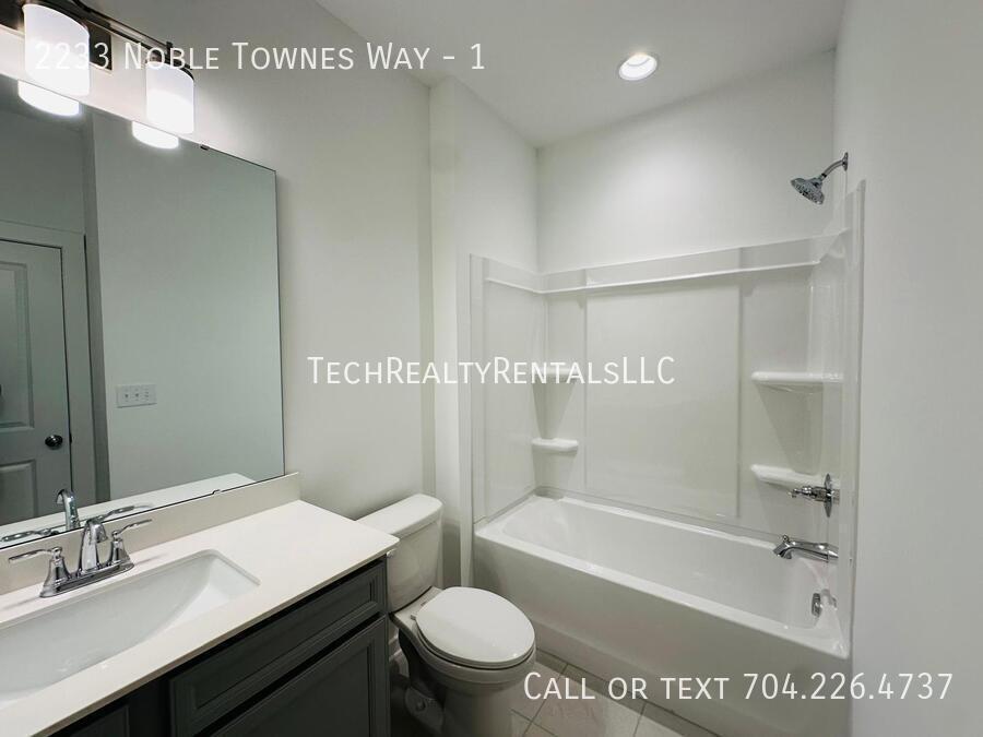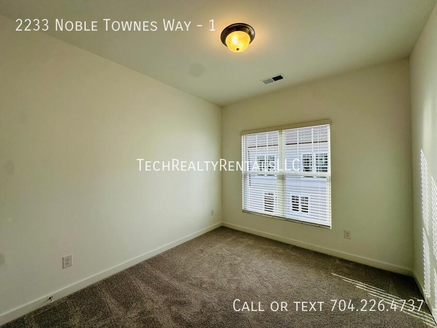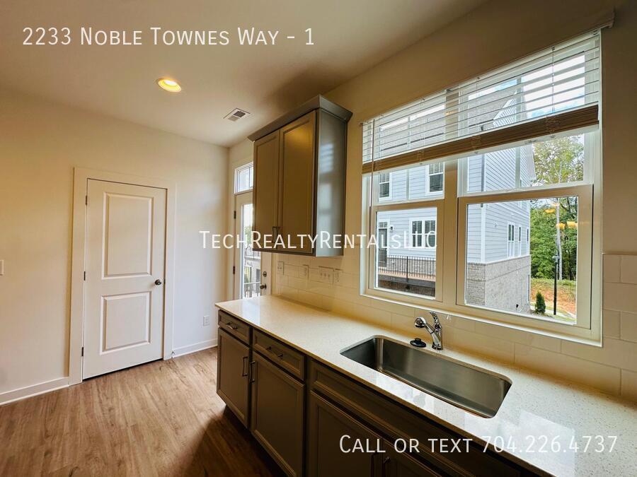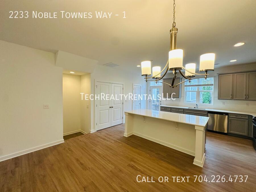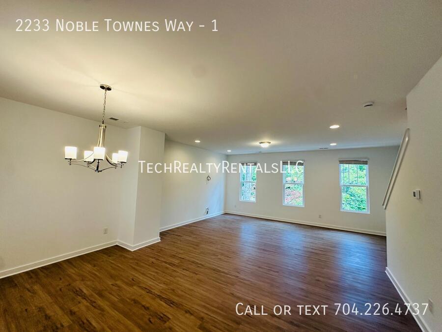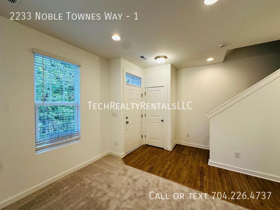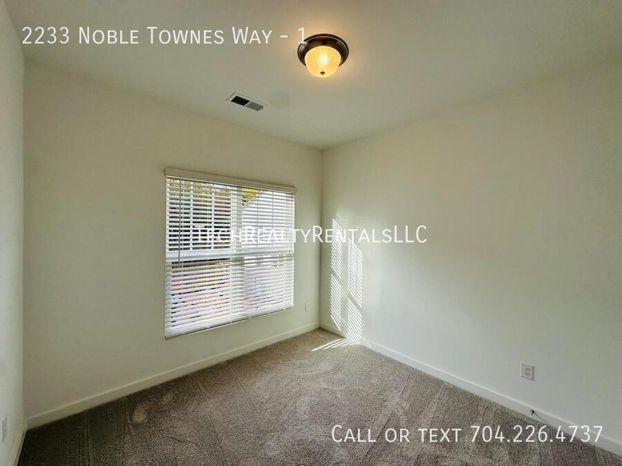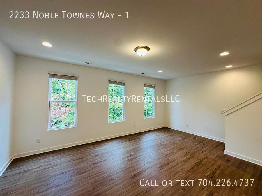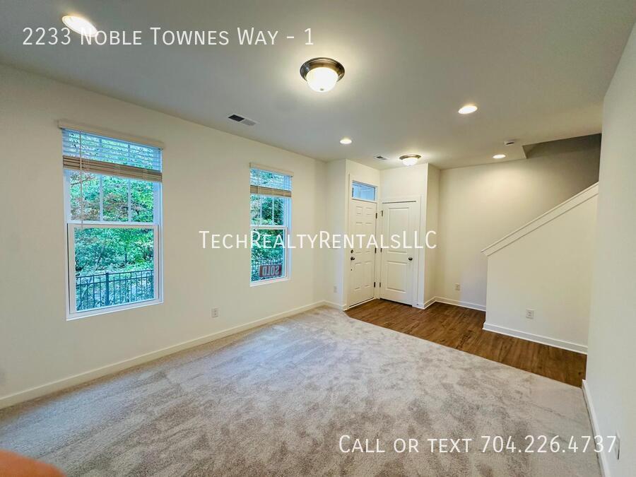 This beautiful new construction townhome in Royall Townes offers an open-concept floor plan with 3 bedrooms, 2.5 bathrooms, and a spacious 2-car garage. The home features 9-foot ceilings on all three levels, giving a bright and airy feel. Enjoy cooking in the stylish kitchen, complete with appliances, a large island, granite countertops, and a tile backsplash. The kitchen opens onto a cozy balcony, perfect for a morning coffee or evening relaxation. The bathrooms are outfitted with elegant tile flooring, adult-height vanities, and marble vanity tops, with the main bathroom featuring dual sinks, a tile shower with a bench, and a spacious walk-in closet. Plus, each level has its own HVAC zone for personalized climate control. For your convenience, a washer and dryer are included along with brand-new appliances throughout the home. The first floor also offers a versatile flex/rec room that can serve as an office, workout space, or media room. Located in the vibrant University Research Park area, this townhome is just minutes from I-485, I-85, and I-77, making for an easy commute around Charlotte. This neighborhood is rich with attractions, including Reedy Creek Nature Center and Preserve for outdoor enthusiasts, along with vibrant dining and nightlife options like Wine Vault and Flying Saucer Draught Emporium. You'll also be close to premier shopping at Concord Mills, as well as cultural and entertainment options nearby. Reach out to schedule a tour today!