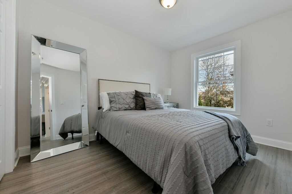 Stunning,rare to market bi-level condo in an amazing North Quincy location. Gut renovated in 2019,this bright and airy unit boasts high end finishes,large bedrooms and plenty of storage. The main level features an open concept kitchen and living area,2 generously sized bedrooms and a gleaming modern bath. Step out to the private back deck. The finished lower level offers a multi-use space perfect for a guest bedroom,office or additional living room,a 1/2 bath and extra closet space. Enjoy the comfort and convenience of in unit laundry and central a/c. One off street parking spot included,and on street parking readily available. Just steps to the North Quincy T/Red Line,highway access to Boston and points beyond,this location is a commuter's dream. Local amenities within arm's reach include Marina Bay,Wollaston Beach and countless shops and restaurants. Don't miss out! MLS# 73456672