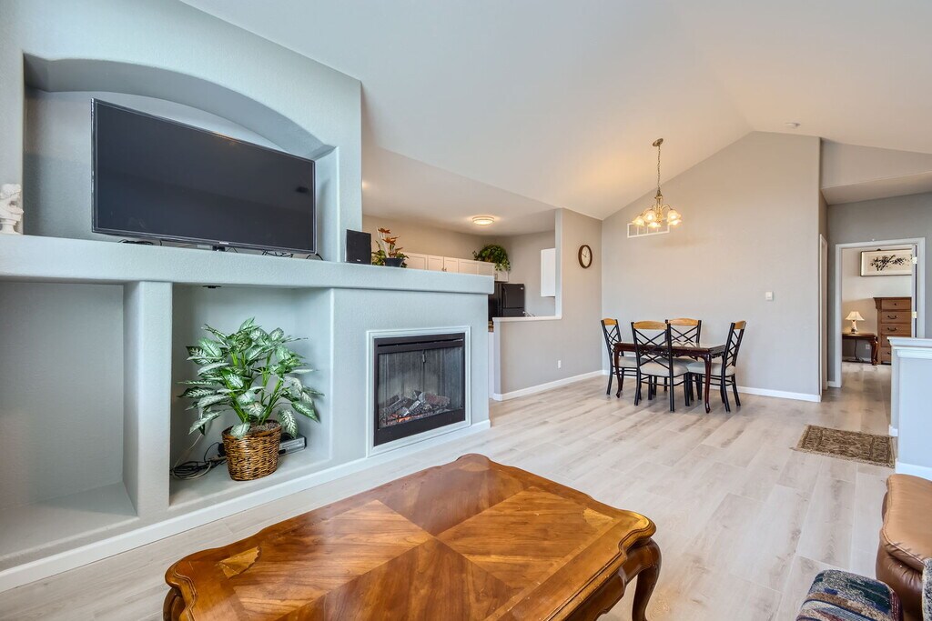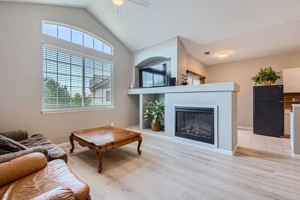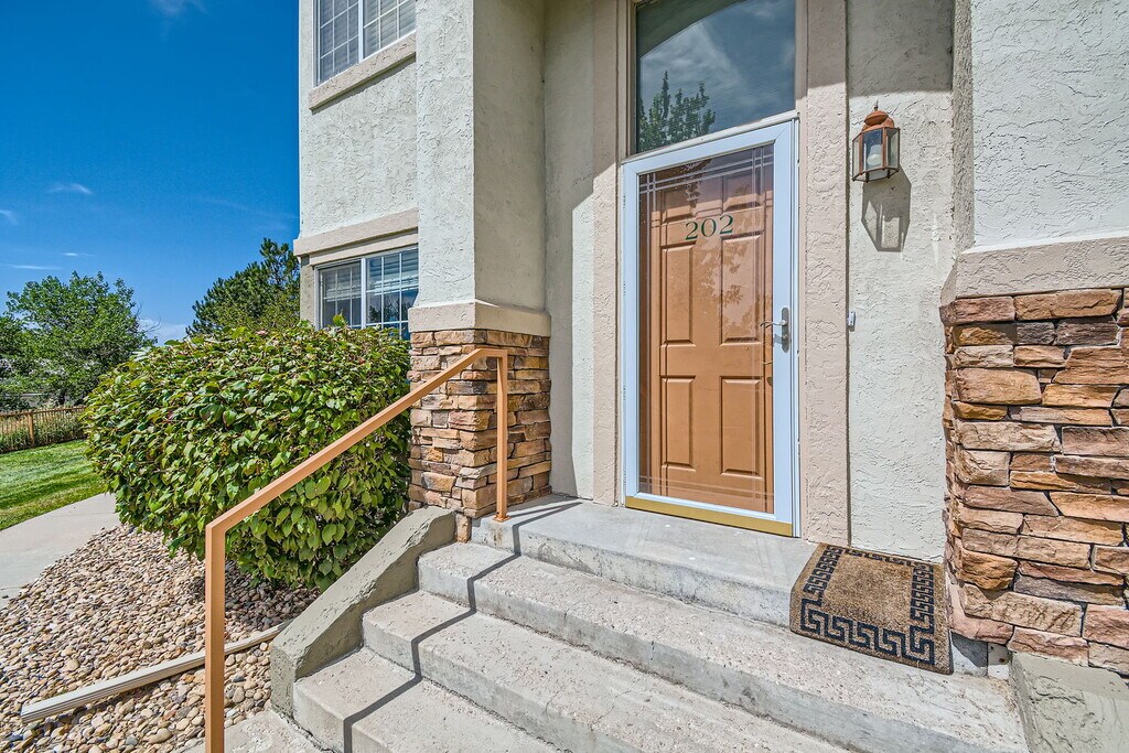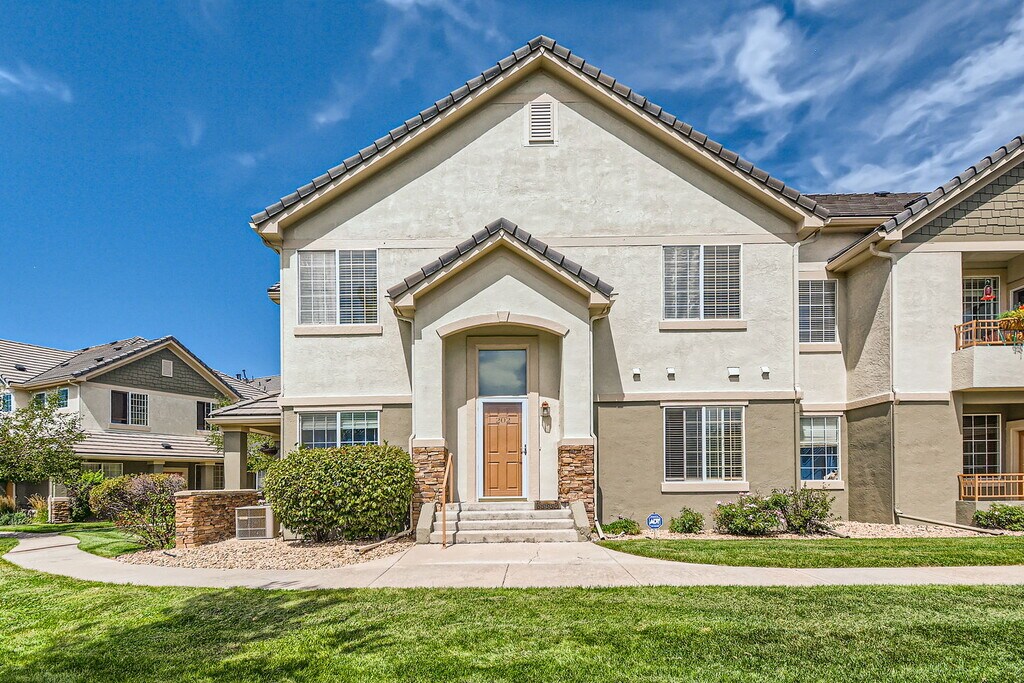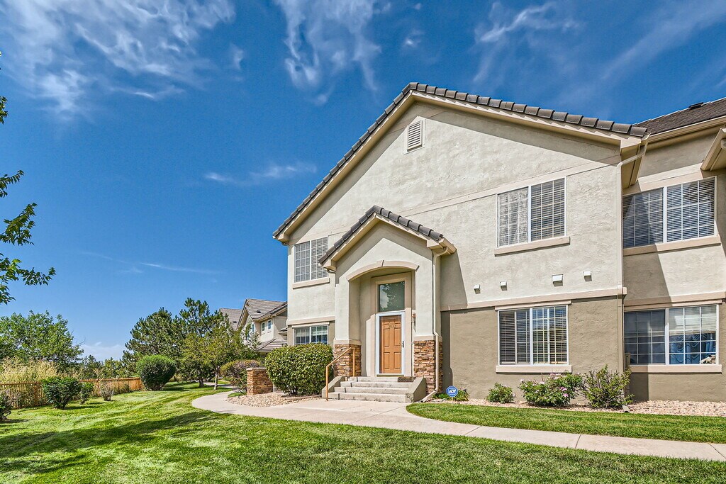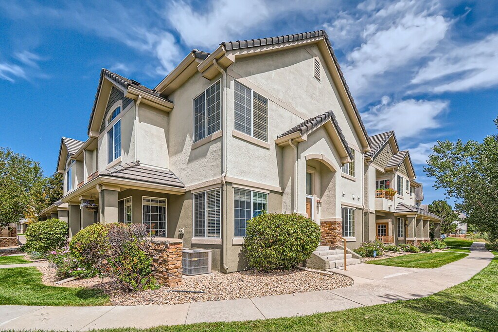 Remodelled Spacious 2 Bedroom, 2 Full Bathroom, End Unit Condo in the beautiful Homestead at Saddle Rock community*Ground level entry / no stairs! kitchen with slab granite countertops, new interior paint, new flooring throughout, breakfast bar, stainless steel appliances including refrigerator, and gorgeous cabinets with built in pantry* Open floor plan with dining room/eating space and a large family room that includes a gas fireplace, Large Primary Bedroom with dual closets and a private full bathroom*Covered patio with storage closet and one detached garage, Large coat closet with more storage, Laundry Room including washer and dryer is located off of the kitchen, Central air conditioning. This unit includes a one car detached garage and there is additional parking on and off street near the unit!. Community pool, abundant walking trails, close to shopping and restaurants! Cherry Creek School District! Condominium MLS# 9169044