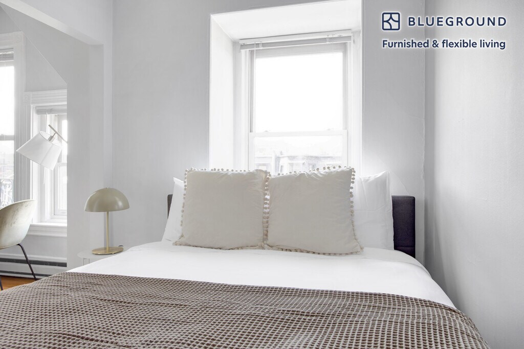 Show up and start living from day one in Boston with this stylish one bedroom Blueground apartment. You’ll love coming home to this thoughtfully furnished, beautifully designed, and fully equipped Back Bay East home. (ID #BOS753) The advertised rate of $3,620/month is the lowest available price, based on a 12 month(s) stay with a move-in date of May 23, 2027. Rates vary depending on the duration of stay, season, and other parameters. For exact pricing and additional pricing components, please visit our website and enter your desired move-in and move-out dates. The rate is applicable when billed upfront; it can be higher if billed in multiple payments. Brokers are welcome to reach out. Were you looking for an unfurnished lease? Try Blueground instead and upgrade from unfurnished to furnished living: - Furnished at rates comparable to unfurnished - No setup or furniture costs - save thousands - Move-in ready - save time, just bring your suitcase Designed with you in mind Thoughtfully designed with bespoke finishes, modern furnishings, and a fully equipped kitchen, you’ll enjoy that “I’m home” feeling with this Blueground apartment. Whether you’re lounging in your charming living room streaming the latest and greatest entertainment on the smart TV or premium wireless speaker, or getting some well-earned rest on the superior quality mattress with luxury linens, you’ll fall in love with everything this Back Bay East apartment has to offer. This apartment also offers in-apartment laundry. Sleeping arrangements Queen Bed, 63in/160cm Amenities Building amenities unique to this one bedroom apartment include an on-site: - Dryer - Washing machine Arrival and ongoing support The entire apartment is yours to enjoy! Throughout your stay, you’ll have access to our Client Experience team through the Blueground App. You can schedule additional cleanings, submit maintenance requests, and view our neighborhood recommendations with just a few taps. We’ll share all details upon confirmation of your stay. Other things to note This Blueground apartment has flexible lease options, allowing you to book it for one month, a year, or more. Please keep in mind that this is a walk up building. We take great pride in ensuring every photo displayed is shot in our own units with our actual furnishings. That said, we regularly refresh our decor and furniture arrangement, which may differ from what’s pictured. [SI]