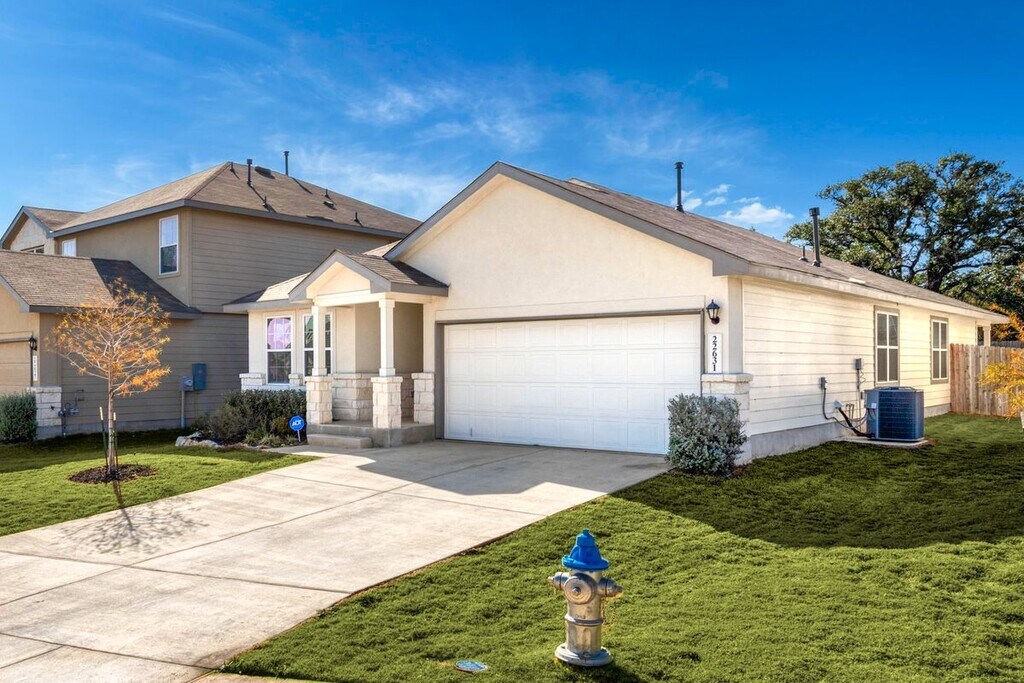Welcome to your new home in vibrant San Antonio, Texas! This inviting rental property is perfectly situated, putting you just minutes away from a variety of delightful restaurants and a local department stores. You will appreciate the proximity to esteemed educational options, including LeafvSpring School at Cibolo Canyons and LeafvSpring School at Sonterra, both just a short drive away and close to Veteran Memorial HS. Methodist Hospital Stone Oak is also conveniently accessible within 17 minutes for your peace of mind. Key property features include a comfortable living space with central heating and cooling, along with air conditioning and ceiling fans to ensure year-round comfort. The open layout offers flexibility and warmth, making it an ideal space for relaxation and entertaining. Access to one of the coolest amenity centers in the area with club House, gym, pool, dog park, trails and sports courts. Very private yard backing to green belt. Rent covers your monitoring alarm system and smart home controls. Don't miss the chance to make this wonderful space your own! Pets are negotiable. Contact us today to schedule a tour!