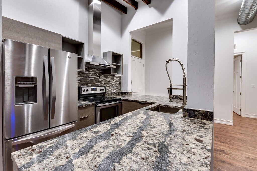 Step into history with this stunning 2-bedroom, 2-bath loft in the Historic River District of Downtown Fort Myers. This charming unit showcases 1900's exposed brick walls, beautiful hardwood floors, industrial-style fixtures, quartz countertops, stainless steel appliances, high ceilings, wood beams, and an abundance of natural light. Located above "The Lodge" restaurant, it's just a stone's throw away from everything Downtown has to offer: theaters, a variety of restaurants, bars, shops, and a vibrant calendar of events. This loft combines historic charm with modern conveniences, offering a unique and inviting living experience in the heart of the city. Don't miss out on this rare gem!