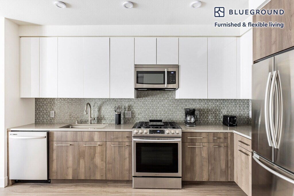 Show up and start living from day one in Mountain View with this stylish one bedroom Blueground apartment. You’ll love coming home to this thoughtfully furnished, beautifully designed, and fully equipped Mountain View home. (ID #SFO1959) The advertised rate of $4,300/month is the lowest available price, based on a 11 month(s) and 29 day(s) stay with a move-in date of February 27, 2026. Rates vary depending on the duration of stay, season, and other parameters. For exact pricing and additional pricing components, please visit our website and enter your desired move-in and move-out dates. The rate is applicable when billed upfront; it can be higher if billed in multiple payments. Brokers are welcome to reach out. Were you looking for an unfurnished lease? Try Blueground instead and upgrade from unfurnished to furnished living: - Furnished at rates comparable to unfurnished - No setup or furniture costs - save thousands - Move-in ready - save time, just bring your suitcase Designed with you in mind Gorgeous furniture, fully equipped kitchen, smart TV, and a premium wireless speaker are just a few of the amenities you’ll find inside this one bedroom apartment. Ideally located in Mountain View, you’ll find a lot to love outside as well. When you’re ready to relax, you’ll be happy to discover every Blueground bedroom comes with superior quality mattresses, luxury linens, and cozy towels. We handle everything so you can simply show up and start living. This apartment also offers in-apartment laundry. Sleeping arrangements Queen Bed, 63in/160cm Amenities Building amenities unique to this one bedroom apartment include an on-site: - BBQ Area - Dryer - Elevator - Game room - Swimming pool - Washing machine - Lounge - Parking - Pets allowed Arrival and ongoing support The entire apartment is yours to enjoy! Throughout your stay, you’ll have access to our Client Experience team through the Blueground App. You can schedule additional cleanings, submit maintenance requests, and view our neighborhood recommendations with just a few taps. We’ll share all details upon confirmation of your stay. Ideally Located This furnished home is located in Mountain View, in Santa Clara County. It is named for the unbeatable views of the Santa Cruz Mountains. Situated in the southern end of the San Francisco Bay Area, residents enjoy the many parks, specifically Shoreline Park, which is the largest in Mountain View and includes an amphitheater and golf course. Go for a walk or run on the San Francisco Bay Trail. In addition, Stevens Creek goes through Mountain View and empties in Shoreline. A paved path for pedestrians and bikes runs alongside the creek, which is ideal for nature lovers. The nearby cities of Palo Alto, Los Altos and Sunnyvale are all easily connected by bus and rail service. Other things to note Building amenities may have an extra cost. This Blueground apartment has flexible lease options, allowing you to book it for one month, a year, or more. Pets are welcome, though weight limits and breed restrictions apply and may incur fees. Parking is offered based on availability and is subject to a fee. We take great pride in ensuring every photo displayed is shot in our own units with our actual furnishings. That said, we regularly refresh our decor and furniture arrangement, which may differ from what’s pictured. [SI]