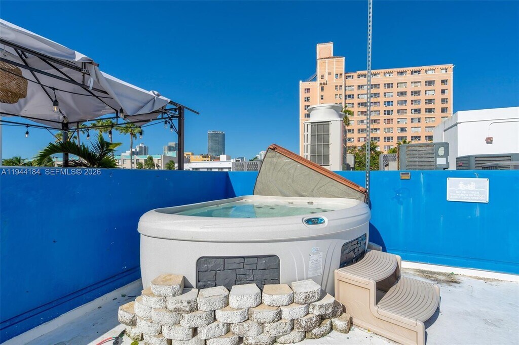 Bright and modern 2-bedroom, 2-bathroom apartment just steps from the beach and one block from iconic Ocean Drive. Featuring updated appliances, elegant finishes, and a private rooftop terrace, its your personal retreat in the center of South Beach. Unwind with panoramic views and a relaxing soak in the jacuzzi after a day in the sun. Washer and dryer in-unit.