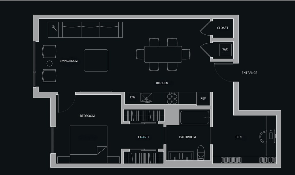 1 Dormitorio, 1 Baño, 715 pies²Disponible AhoraDetalles de Diponibilidad