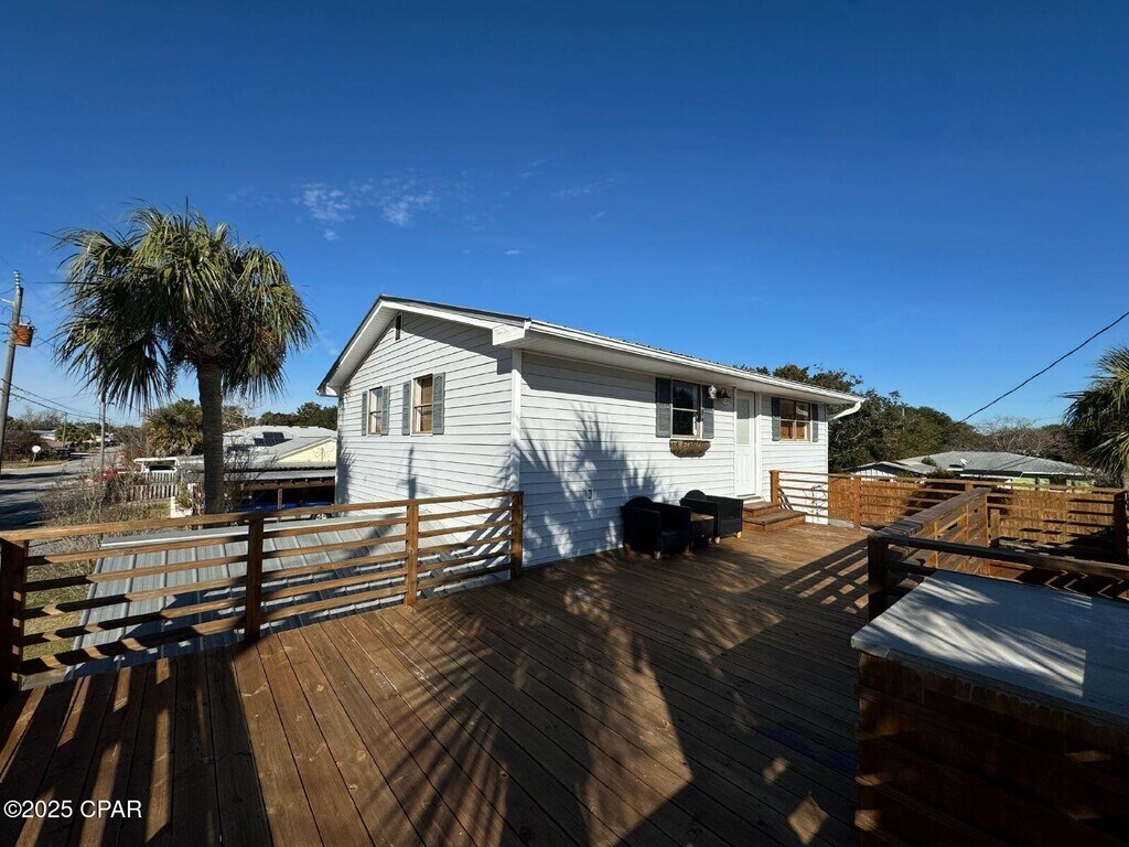 An awesome little beach house apartment in Laguna Beach, just a few blocks from one of Florida's most BEAUTIFUL dedicated beaches! Welcome to 230 Christmas Tree Ln! This is a duplex with an upstairs and downstairs apartment just waiting for you to call home. Upstairs apartment is a 2 bedroom 1 bath unit and a LARGE deck offering the opportunity for a fantastic outdoor living space. There is a shared laundry room downstairs accessible to both units with washer and dryer included. Upstairs apartment has covered parking. There is also a shared fenced back yard with a fire pit. The location is our FAVORITE FEATURE of this property being just 5-10 min from 30A to the west and Pier Park to the east, a 5 min walk to the dedicated beach access, and just around the corner from the Carousel, the BEST family owned grocery store in our area with hand cut meats and a wine selection that is second to none! In addition to rents, the Owner requires a $300 utility fee covering Power, Water, Sewer, Garbage, yard service, Internet, Pest Control and built in RO (reverse osmosis) water filtration system - so no utility deposits, just one easy payment with your rents. Security Deposit is equal to 1 mo rent, but also OPTIONAL if you get approved by Obligo! Make this the year that you live where you LOVE!! Text a copy of your driver's license to our office and we will set up your showing within 1 business day!