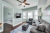 The fully- and newly-furnished cozy apartment is ready for you to move in,featuring beautifully decorated soothing colors of aqua,teal,gray,and white. Designed perfectly for anyone moving across the state,country,or internationally for school or work,it has everything you need. (ALL UTILITIES INCLUDED)(ASSIGNED PARKING SPACE) You'll walk into a fully-stocked kitchen complete with dishes,eating utensils,and cooking utensils,along with ceramic cookware,mixing bowls,measuring cups and spoons,muffin cups,and even oven mitts. If you need additional tools like a can opener or vegetable peeler,it's all here,along with basic spices stored neatly in a built-in spice drawer. The living room is cozy with a chenille loveseat and several ottomans for seating and storage. Plus,there's a TV with a firestick for your entertainment needs. For those overnight guests,there's a convertible chair that turns into a twin bed! In the bedroom,you'll find a full-size bed with all bedding provided and another TV ready for your enjoyment. There's ample storage as well with drawers under the bed and a lighted closet complete with hangers and essentials for your convenience. The bathroom has all the necessities stocked,including soft microfiber towels and a hair dryer for a smooth start to your day. Imagine hosting a fireworks-watching party in your living room next July 4th with amazing views of downtown Indianapolis! Based on information submitted to the MLS GRID as of [see last changed date above]. All data is obtained from various sources and may not have been verified by broker or MLS GRID. Supplied Open House Information is subject to change without notice. All information should be independently reviewed and verified for accuracy. Properties may or may not be listed by the office/agent presenting the information. Some IDX listings have been excluded from this website. Prices displayed on all Sold listings are the Last Known Listing Price and may not be the actual selling price.