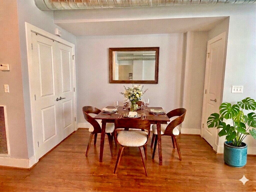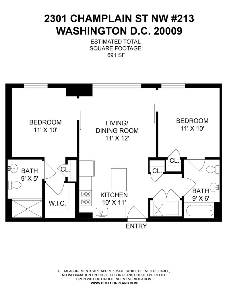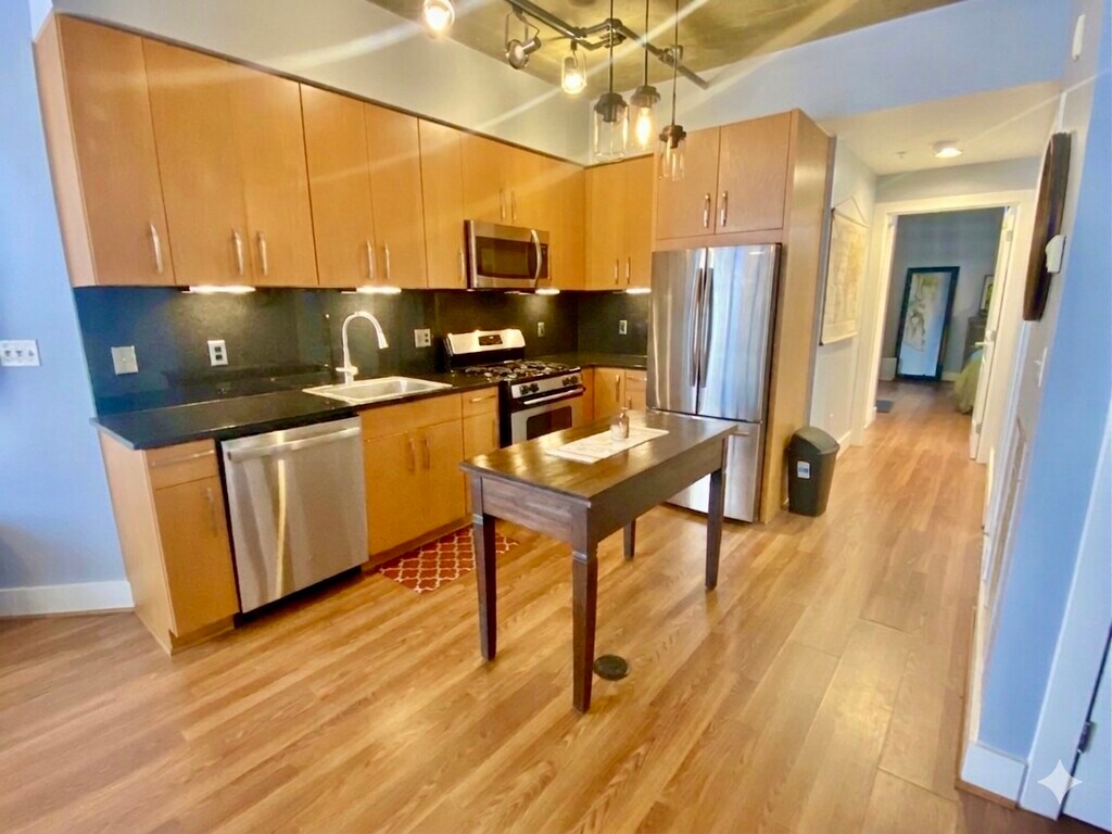 AVAILABLE JUNE 1ST. Contemporary 2 bed/2 bath condo at Adams Row in Adams Morgan w/assigned parking and outdoor space. The 840 sq ft condo features a separate terrace-level entrance, open floor plan, large living room area, separate dining space, modern kitchen (with granite countertops, stainless steel appliances, gas cooking & microwave), in-unit washer/dryer, central A/C, hardwood floors, high ceilings, large windows and plenty of storage. One bedroom is large enough for a king-size bed and offers a walk-in closet, while the smaller bedroom (with closet, door and windows) is a flexible space that can be used as a bedroom, guest room, den or office. Two full-size bathrooms feature tub/showers, tiled floors and mirrored/illuminated medicine cabinets. The No-Smoking building is steps to Harris Teeter, The Line Hotel, Adams Morgan dining, and close to three Metro stops, multiple bus stops, multiple Capital Bikeshare stations, Meridian Hill Park and Rock Creek Park. Walk Score: 98. The building is wired for Comcast and Starry Internet. Recent building improvement includes: 3 new state-of-the-art industrial water heaters; Amazon locker and secure lockboxes for packages; and new Kastle building-wide security system. Rent includes gas, water, sewer and trash. Tenant pays Pepco/electric and cable/WiFi. NO PETS. NOTE: Photos have been staged using Gemini AI.