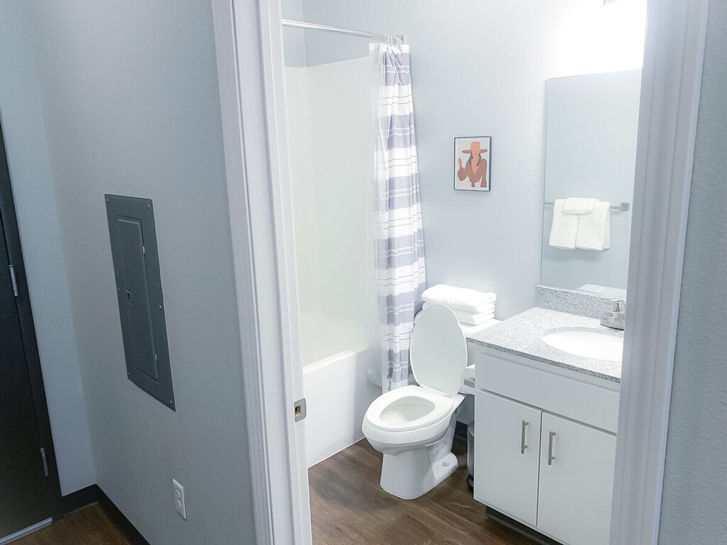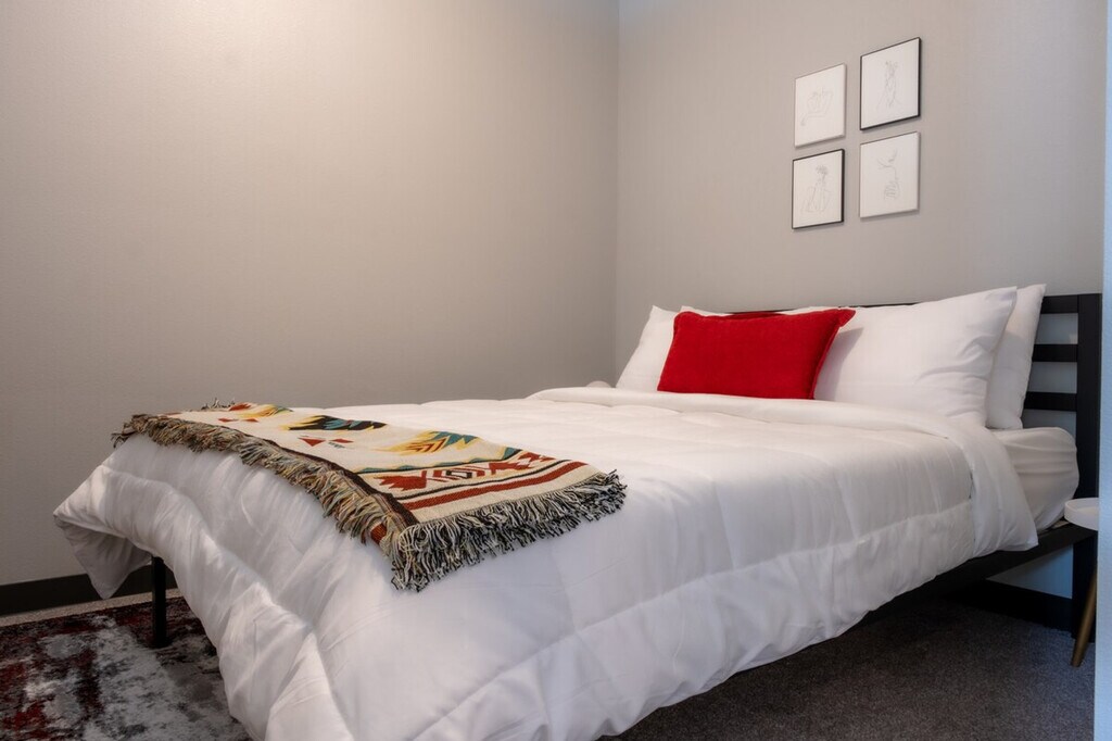 Experience a new way of travel with this thoughtfully designed apartment, managed by our trusted partner. Feel at home in this quiet and friendly community, featuring a private patio, a full living room area, a kitchen, a bathroom, one bedroom, and an in-unit laundry area. Enjoy the convenience of self check-in and 24/7 support via app, text, email, or phone. This apartment offers a full living room area and a kitchen, providing a comfortable space to relax and unwind. Fresh towels and bathroom essentials are always provided, and the apartment undergoes hotel-standard deep cleaning before your stay. Guests can enjoy access to a shared seasonal pool and gym area. The first-floor lobby area, gym, rooftop patio, rooftop seasonal pool, and third-floor lounge area are also accessible to guests. Situated in a quiet and friendly community, this apartment offers access to a shared seasonal pool and gym area. The first-floor lobby area, gym, rooftop patio, rooftop seasonal pool, and third-floor lounge area are also accessible to guests. The keyfob will allow you to access your room, and there is a $450 replacement fee if lost. There is a trash room on the bottom floor of the parking garage. Mail cannot be received at this location. [SI]