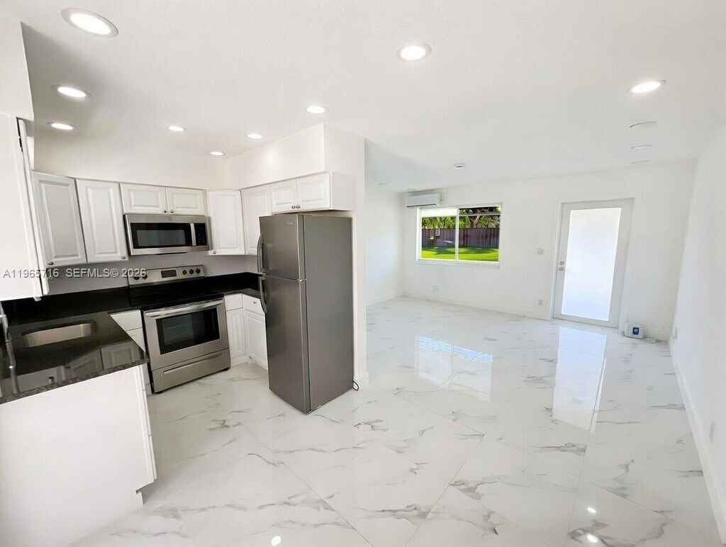 The Palm Unit at The Wilton Courtyard. Charming Newly Remodeled Fourplex 1 Bedroom 1 Bath unit in the heart of Wilton Manors! 1 parking spaces included. Nestled in the most desirable area of Wilton Manors, this property provides the perfect blend of comfort and convenience. Situated on a quiet and safe street with a single family feel, minutes away from Wilton Manors entertainment district and Ft. Lauderdale. This unit boasts newer marble-like porcelain white floors, New black granite countertops, 2 New modern AC Units and abundant natural light. The updated white cabinetry kitchen features new stainless steel appliances, including dishwasher. Newly painted and NEW 1in white cordless blinds installed on all windows. NEW hurricane impact modern windows/doors, and new grass throughout property. On-site full size Washer/Dryer. New artificial bamboo unit dividers and white fence door being installed outside courtyard. Super fast Fiber Optic internet/cable included. All Utilities Included in rent. Tenants are able to come up with First Month & Security Deposit only. Whether you're a foodie, a nightlife enthusiast, or someone who loves the convenience of being near urban living in a rural, quiet setting, this property has it all. Do not miss this opportunity! *Renters Insurance and Small Application Fee/Background Check. MLS # A11965752