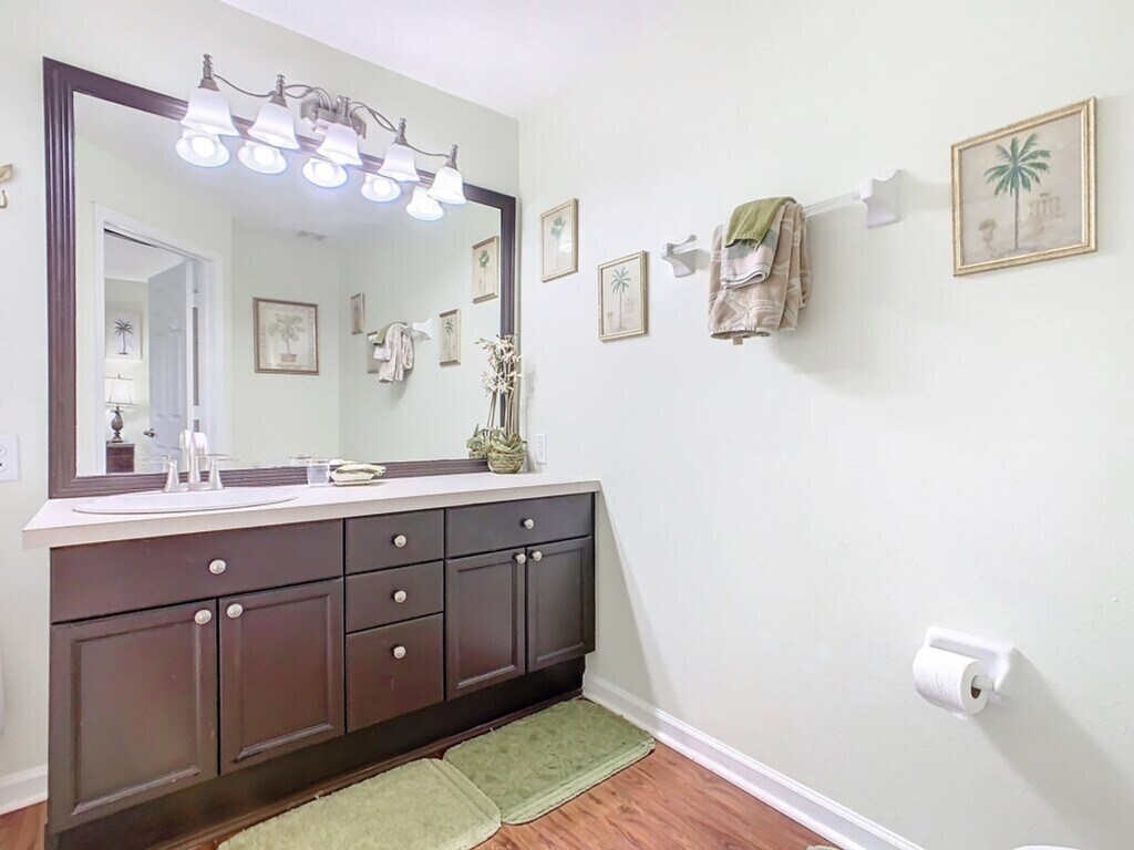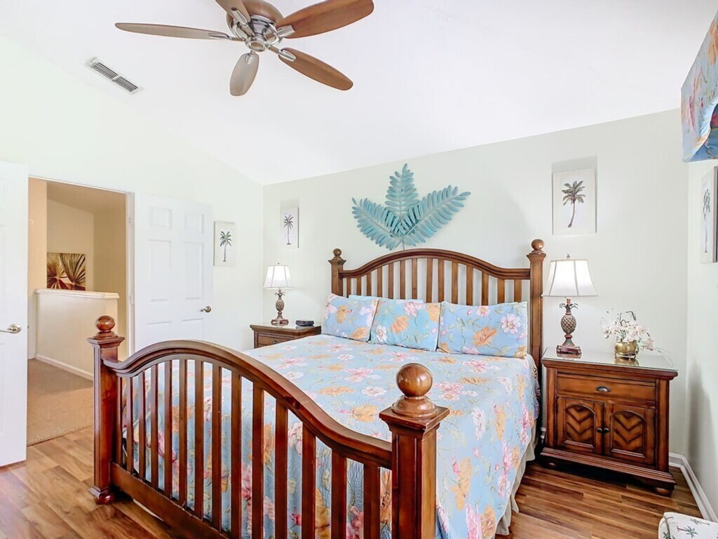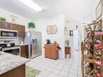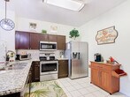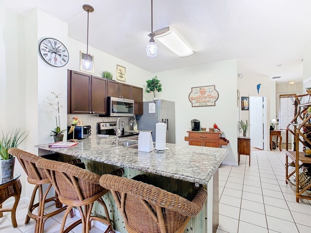 Come on vacation and stay in luxury at this beautifully themed 3-bedroom, 3-bathroom townhome in Windsor Palms Resort. Perfect for up to 8 guests, this 1,440 sq. ft. home features a king-size bed, queen-size bed, and four twin beds, all with en-suite bathrooms. Enjoy a private splash pool overlooking serene conservation views, a fully equipped kitchen, TVs in every room, and a family-friendly community just minutes from Disney. Unwind after a long day at the parks in the spacious family room featuring comfortable seating, a large-screen TV, cable, and a DVD player. The fully equipped kitchen has everything you need to prepare meals, including cutlery, crockery, cookware, and modern appliances. Dine at the table with seating for four, or enjoy casual meals at the breakfast bar with seating for three. The master bedroom offers a luxurious retreat with a king-size bed, en-suite bathroom, TV, and clock radio. The second bedroom, ideal for kids or groups, has four twin beds (double bunks), an en-suite bathroom, TV, and fun decor. A cozy queen-size bed with an en-suite bathroom and TV makes the downstairs bedroom perfect for guests seeking easy access. Take a refreshing dip in your private splash pool overlooking tranquil conservation views. The patio is equipped with a table, chairs, and a child safety fence. Pool heat is available for $35 per night plus tax. Enhance your stay with rental items like grills, pack-and-plays, or highchairs for an additional cost. Complimentary parking for standard vehicles is provided. Located just minutes from Disney World and 10 minutes from Island H2O Live! water park, this home offers the perfect location for exploring Orlando’s world-famous attractions, shopping, dining, and golf. There is a no parties or smoking policy in the home. Early check-in and check-out requests must be made at least 24 hours in advance. Resort requires registration of all drivers and vehicles for gate access, and failure to provide this information may delay your entry. [SI]