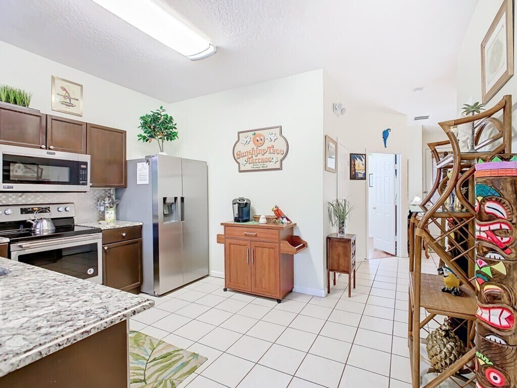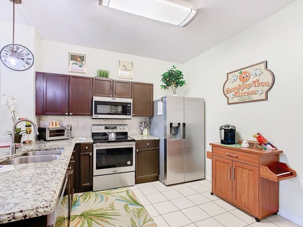 Escape to Mickey’s Place House at Windsor Palms Resort, a luxurious 3-bedroom, 3-bathroom townhouse just minutes from Disney! Comfortably sleeping up to 8 guests, this beautifully decorated home features a private splash pool, a fully equipped kitchen, themed bedrooms, and resort amenities like a pool, fitness center, and theater. Conveniently located near top Orlando attractions, this home ensures an unforgettable vacation. Unwind in the bright and inviting living room featuring plush seating, a large screen TV with cable, and a DVD player. It’s the perfect spot to relax after a day at the parks. Cook up delicious meals in the fully equipped kitchen, complete with cutlery, crockery, and cookware. Enjoy meals together at the dining table with seating for 4 or the breakfast bar with 4 additional stools. Each of the 3 bathrooms is en-suite, offering privacy and convenience. Enjoy bright, clean spaces with all necessary amenities. Pool heating is available for an additional fee of $35 per night plus tax and must be requested 7 days in advance. Extras such as a grill, pack-and-play, or highchairs are available upon request at an additional cost. Located just minutes from Disney World, Windsor Palms Resort provides easy access to Orlando's top attractions. Island H2O Live! Waterpark is only 10 minutes away. Conveniently located near I-4, 429, and top-rated restaurants and shops, you can also enjoy nearby world-class golf courses. Smoking is strictly prohibited inside the home. RVs and trailers are not allowed at the resort. All vehicles and drivers must be registered in advance for gate access. High-speed internet is available for your convenience. [SI]