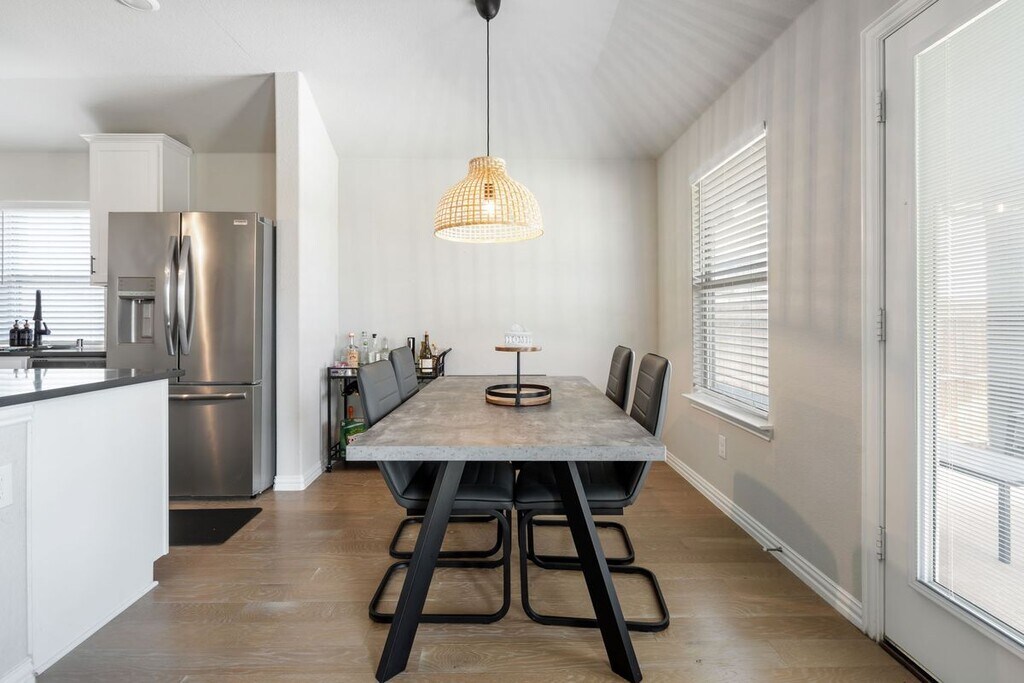Charming and move-in ready, this 3-bedroom, 2-bath home in the desirable Wildcat Ranch community of Crandall brings tenants a modern living space. This home features an open-concept layout with luxury vinyl plank flooring, a bright and spacious kitchen with a large island, white cabinetry, pendant lighting, and gas cooktop, plus a private primary suite with dual sinks and a walk-in closet. Enjoy outdoor living with a covered patio and designated fire pit area in the fully fenced backyard. Additional highlights include a convenient mud area, attached 2-car garage, and full access to community amenities including a pool, splash pad, playground, and trails. Located in the Crandall ISD with easy access to schools and local conveniences just 30 minutes from Downtown Dallas! This home is available for lease with a 12+ month lease term. Pets considered on a case by case basis, reach out for any additional questions!