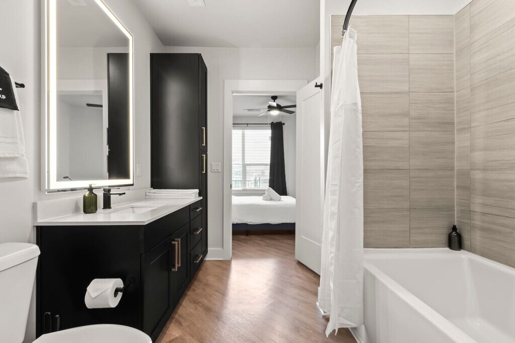 Feel at home in this amazing 1-bedroom apartment in Tampa, perfect for your business trip. It's perfectly located for a quick ride to the beach or downtown. The combined living and dining area are furnished with LED lighting and modern furniture. This apartment offers you a private oasis to relax, with plenty of natural light, wooden floors, and finishes creating a pleasant and modern ambiance. The kitchen and silverware are readily available for you to cook your favorite meals during your stay. Enjoy a good night's sleep in the luxury Nectar queen bed with hotel-caliber pillows. Enjoy access to the fully equipped on-site gym and the spacious shared pool area. Free high-speed Wi-Fi with up to 1GBPS upload/download speeds, free parking, and in-unit laundry are available. Pets are welcome with a fee of $25 per pet per night, $200 per pet for 8–28 night stays, or $300 per pet for 29+ night stays. Early check-in at 2PM or 12PM and late check-out at 12PM are available for an additional fee of $25 or $50, respectively, subject to approval. Minutes away from Downtown Tampa, enjoy all that Tampa has to offer from this location! Whole Foods Market, True Food Kitchen, and Colony Grill are within a short walk. Raymond James Stadium and Amalie Arena are a short drive away. You're also close to beaches like Ben T Davis Beach, Davis Islands Beach, and Madeira Beach, and attractions like Al Lopez Park, Tampa Theatre, and the Tampa Museum of Art. Smoking will result in a $500 fine. Absolutely no parties are allowed; violations will result in a $1,000 fine and immediate eviction with no refund. Noise curfew is from 10 PM–7 AM on weekdays and 10 PM–8 AM on weekends; penalties for violation include a complimentary warning for the first offense, a $100 fine for the second, and immediate eviction with no refund for the third. There is a $100 fee for a missing keyfob. Pet weight limit is 35 lbs, and no pitbulls are allowed. All pets must be housetrained and must not be left alone in the apartment. Guests must be 21+ to book a reservation. We are not allowed to accept mail orders to the building since there is only 1 unique mailbox key per apartment. [SI]