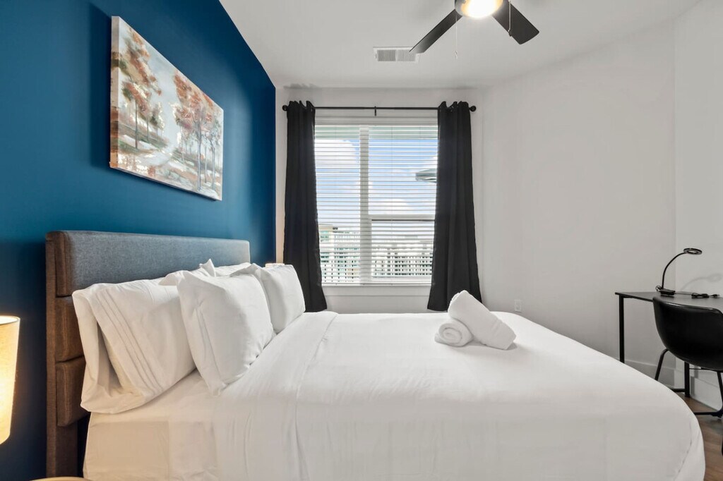 Feel at home in this amazing 1-bedroom apartment in Tampa, perfect for your business trip. It is perfectly located for a quick ride to the beach or downtown. This brand-new apartment features LED lighting and modern furniture. The combined living and dining area offers a private oasis to relax, with plenty of natural light, wooden floors, and finishes creating a pleasant and modern ambiance. The kitchen and silverware are readily available for you to cook your favorite meals. Enjoy a good night's sleep on the luxury Nectar queen bed and relax in a peaceful and quiet space. This listing is 1 of 2 identical apartments (floorplan, furniture and amenities). The only difference is the placement of two windows pictured, and one is not painted blue. Enjoy access to the on-site gym and the spacious shared pool area. Free high-speed Wi-Fi with up to 1GBPS upload/download speeds, self-check-in and check-out via smart lock, free parking, in-unit laundry, AC and heating for full temperature control, and a 50" HD Smart TV are available for guests to use. Minutes away from Downtown Tampa, this apartment is located near Whole Foods Market, Target, Walmart, and Trader Joe’s. It is also conveniently located near Raymond James Stadium, Amalie Arena, Al Lopez Park, Tampa Theatre, Tampa Museum of Art, International Plaza and Bay Street, Tampa Riverwalk, Henry B. Plant Museum, Armature Works, Ybor City, American Victory Ship & Museum, Tampa Bay History Center, The Florida Aquarium, ZooTampa at Lowry Park, Busch Gardens Tampa Bay, USF Botanical Gardens, Big Cat Rescue, Adventure Island, and Serengeti Safari. Enjoy excellent dining options directly outside the community. Smoking will result in a $500 fine. Absolutely no parties are allowed; violations will result in a $1,000 fine and immediate eviction with no refund. Noise curfew is from 10 PM–7 AM (weekdays) and 10 PM–8 AM (weekends). Penalties for noise curfew violation are a complimentary warning for the first offense, a $100 fine for the second, and immediate eviction with no refund for the third. This is a residential building; staff is for tenants, not short-term guests. For questions or concerns, contact the host directly and only approach building staff/security in case of an emergency. Guests must load and start the dishwasher with all dirty dishes and/or cookware, dump food waste in the garbage (not in the sink disposal), and place all trash in the trash can or dispose of it in the trash shoot. No entry for unregistered guests or those not on the reservation is allowed. Guests must be 21+ to book a reservation. A $100 fee applies for a missing keyfob. The pet fee is $45 per pet, and any violation of the pet policy may lead to cancellation without any refund. Early check-in is available for $25 at 2 PM or $50 at 12 PM, subject to approval. Late check-out is available for $25 at 12 PM, subject to approval. Pet weight limit is 35 lbs, and no pitbulls are allowed. All pets must be housetrained and must not be left alone in the apartment by themselves. The “twin bed” listed as an additional bed in the common area is actually an air mattress. Amenities outside of the apartment (e.g. gym) are managed by the building and are subject to maintenance outside of our control. Maintenance does not warrant a refund. We are not allowed to accept mail orders to the building since there is only 1 unique mailbox key per apartment. However, I recommend getting a PO Box at the local USPS and having orders shipped there. [SI]