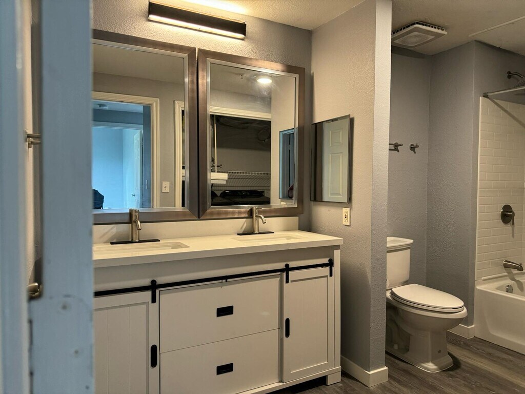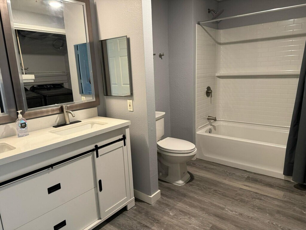 **WATER & TRASH & ALL APPLIANCES INCLUDED IN RENT PRICE** Welcome to this updated 2/1 condo in the heart of Austin’s vibrant Domain area! Step into a bright, open living space with contemporary finishes and plenty of natural light that flows to a private balcony with inviting views. The modern kitchen features quartz countertops, stainless steel appliances, and clean white cabinetry. Enjoy a carpet-free interior, along with a 2nd balcony off the primary bedroom. Full bath features a spacious white vanity with ample storage and a tiled shower/tub combo. Fridge, washer, and dryer provided, and rent coves water and trash. Community perks include gated access, a sparkling pool, a fitness center, and a clubhouse. All of this comes with unbeatable access to The Domain, Q2 Stadium, restaurants, breweries, shopping, parks/trails, and major tech employers. Take advantage of easy commuting via MoPac, I-35, TX-45, and the MetroRail. Don’t miss your opportunity to make this your next address!