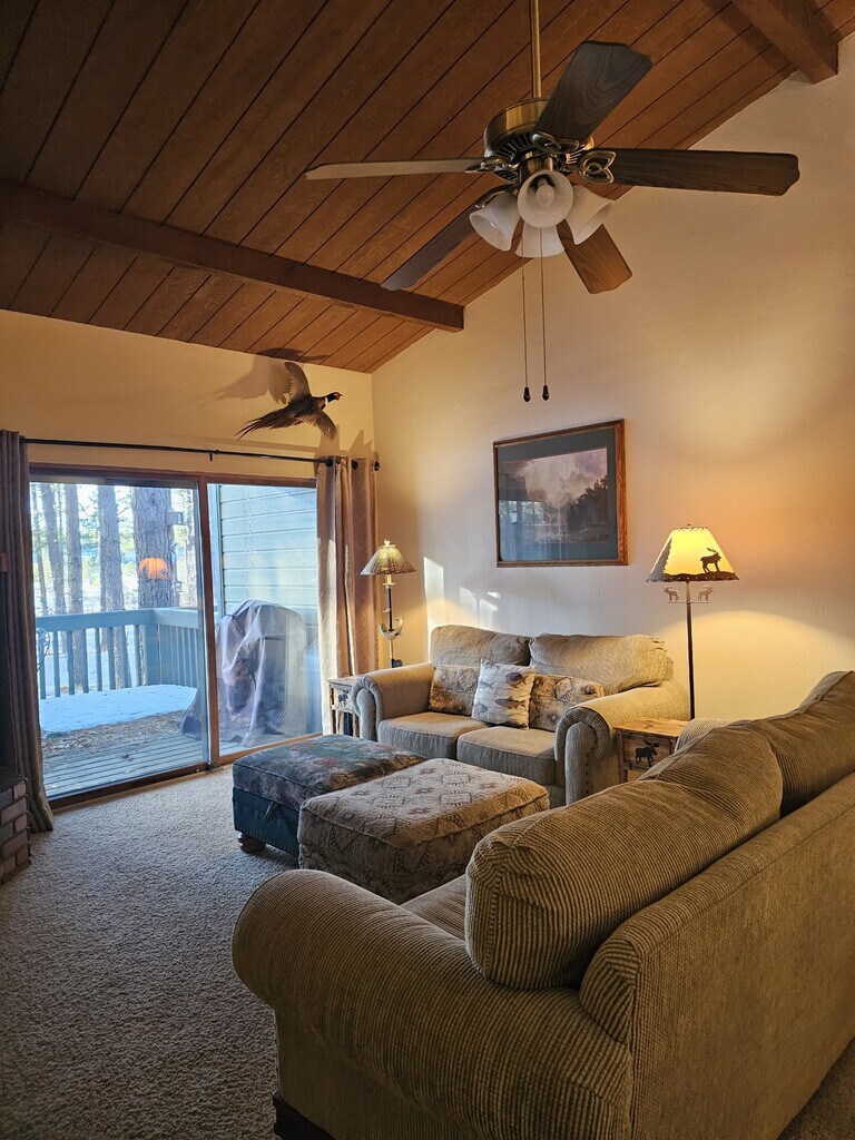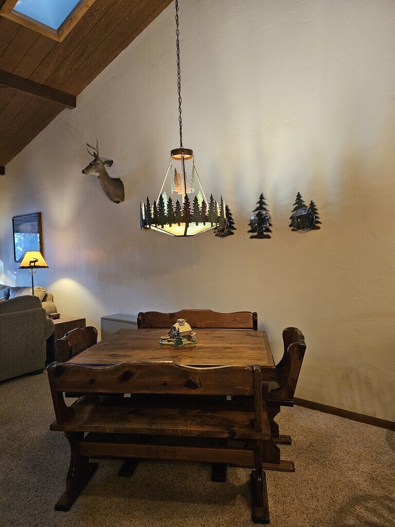 Long-term, fully furnished rental featuring 2 bedrooms and 2 bathrooms plus a spacious loft in a 1.5-story layout. Ideally situated backing Rainbow Lake, this home offers peaceful views and a serene setting. Amenities include a 1-car attached garage, cozy wood-burning fireplace, ETS heater, and additional wall heaters for comfort. Pets considered with landlord approval. Water and Trash is included.