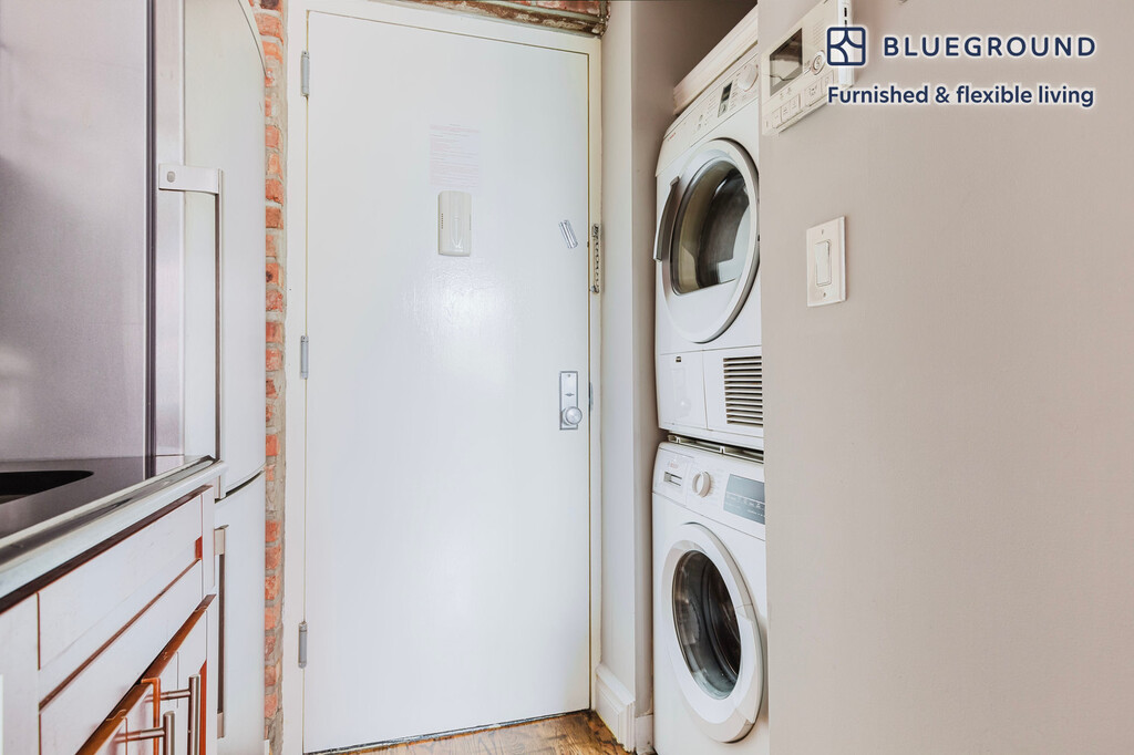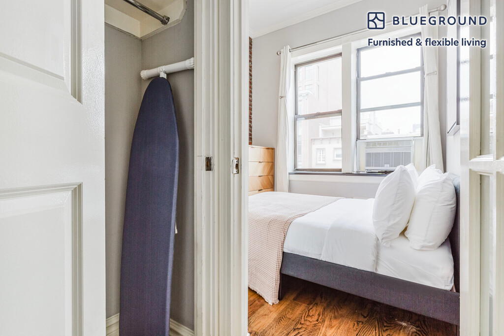 Show up and start living from day one in New York with this stylish one bedroom Blueground apartment. You’ll love coming home to this thoughtfully furnished, beautifully designed, and fully equipped West Village home. (ID #NYC1526) The advertised rate of $5,450/month is the lowest available price, based on a 12 month(s) stay with a move-in date of April 15, 2026. Rates vary depending on the duration of stay, season, and other parameters. For exact pricing and additional pricing components, please visit our website and enter your desired move-in and move-out dates. The rate is applicable when billed upfront; it can be higher if billed in multiple payments. Brokers are welcome to reach out. Were you looking for an unfurnished lease? Try Blueground instead and upgrade from unfurnished to furnished living: - Furnished at rates comparable to unfurnished - No setup or furniture costs - save thousands - Move-in ready - save time, just bring your suitcase Designed with you in mind Gorgeous furniture, fully equipped kitchen, smart TV, and a premium wireless speaker are just a few of the amenities you’ll find inside this one bedroom apartment. Ideally located in New York, you’ll find a lot to love outside as well. When you’re ready to relax, you’ll be happy to discover every Blueground bedroom comes with superior quality mattresses, fully stocked linens, and cozy towels. We handle everything so you can simply show up and start living. This apartment also offers in-apartment laundry. Sleeping arrangements Double Bed, 55in/140cm Amenities Building amenities unique to this one bedroom apartment include an on-site: - Dryer - Elevator - Washing machine - Pets allowed Arrival and ongoing support The entire apartment is yours to enjoy! Throughout your stay, you’ll have access to our Client Experience team through the Blueground App. You can schedule additional cleanings, submit maintenance requests, and view our neighborhood recommendations with just a few taps. We’ll share all details upon confirmation of your stay. Ideally Located This furnished rental is located in the West Village. Cute storefronts and some cobblestone streets give the charming neighborhood the feel of a quaint small town. Populated with shoppers, diners and art lovers. The historically artistic area has numerous piano bars, cabarets, and theaters to discover. Both Times Square and Wall Street are just 15 minutes away by subway. Other things to note This Blueground apartment has flexible lease options, allowing you to book it for one month, a year, or more. Pets are welcome, though weight limits and breed restrictions apply and may incur fees. Brokes CYOF. We take great pride in ensuring every photo displayed is shot in our own units with our actual furnishings. That said, we regularly refresh our decor and furniture arrangement, which may differ from what’s pictured. [SI]