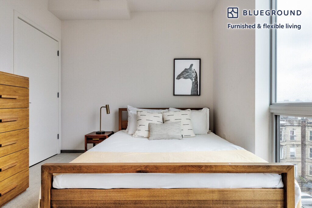 Show up and start living from day one in Chicago with this beautiful two bedroom Blueground apartment. You’ll love coming home to this thoughtfully furnished, beautifully designed, and fully equipped Logan Square home with stunning views over the city. (ID #CHI372) The advertised rate of $2,140/month is the lowest available price, based on a 1 month(s) and 27 day(s) stay with a move-in date of January 30, 2026. If you’re looking for a 1-year stay, the rate is $3,880/month. Rates vary depending on the duration of stay, season, and other parameters. For exact pricing and additional pricing components, please visit our website and enter your desired move-in and move-out dates. The rate is applicable when billed upfront; it can be higher if billed in multiple payments. Brokers are welcome to reach out. Were you looking for an unfurnished lease? Try Blueground instead and upgrade from unfurnished to furnished living: - Furnished at rates comparable to unfurnished - No setup or furniture costs - save thousands - Move-in ready - save time, just bring your suitcase Designed with you in mind Thoughtfully designed with bespoke finishes, modern furnishings, and a fully equipped kitchen, you’ll enjoy that “I’m home” feeling with this Blueground apartment. Whether you’re lounging in your sophisticated living room streaming the latest and greatest entertainment on the smart TV or premium wireless speaker, or getting some well-earned rest on the superior quality mattress with luxury linens, you’ll fall in love with everything this Logan Square apartment has to offer. This apartment also offers in-apartment laundry. Sleeping arrangements Queen Bed, 63in/160cm Queen Bed, 63in/160cm Amenities Building amenities unique to this two bedroom apartment include an on-site: - Dryer - Elevator - Washing machine - Lounge - Pets allowed - Rooftop BBQ Arrival and ongoing support The entire apartment is yours to enjoy! Throughout your stay, you’ll have access to our Client Experience team through the Blueground App. You can schedule additional cleanings, submit maintenance requests, and view our neighborhood recommendations with just a few taps. We’ll share all details upon confirmation of your stay. Ideally Located This furnished apartment is located in the Logan Square neighborhood. The area is one of Chicago’s trendiest and hippest neighborhoods, with a thriving arts and entertainment district on Milwaukee Avenue. Here, a strong local connection is evident, from active preservation groups to community gardens and a farmers market. Near the square, the boulevards become widened thoroughfares and are set apart by grassy, landscaped medians and tall, stately trees. The neighborhood has four in total and these link together to form Chicago's ‘Emerald Necklace’, an expansive system of interconnected parks and streetscapes. All along the parks, there are beautifully-restored mansions and majestic churches. Other things to note Building amenities may have an extra cost. This Blueground apartment has flexible lease options, allowing you to book it for one month, a year, or more. Pets are welcome, though weight limits and breed restrictions apply and may incur fees. We take great pride in ensuring every photo displayed is shot in our own units with our actual furnishings. That said, we regularly refresh our decor and furniture arrangement, which may differ from what’s pictured. Also note - This apartment faces the street - This apartment's central location means it can be noisy at times - This apartment is located near a railway, so expect to hear moderate noise when trains pass [SI]