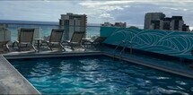 This remodeled furnished studio apartment at 2345 Ala Wai Blvd offers 441 square feet of living space, featuring one bathroom with a murphy bed. The remodeled unit includes essential amenities such as air conditioning, a washer/dryer, and a microwave. Residents can enjoy access to a pool, sauna, and grill area, enhancing the outdoor living experience. The building is smoke-free with 24 hour security and gated, providing a secure environment. The living area is complemented by vinyl flooring and ceiling fan for comfort. The bathroom is efficiently designed for convenience. The exterior features a deck for relaxation and socializing. Great location - near International Marketplace, Waikiki Target, and Waikiki Beach. Please call and leave message. Thank you.