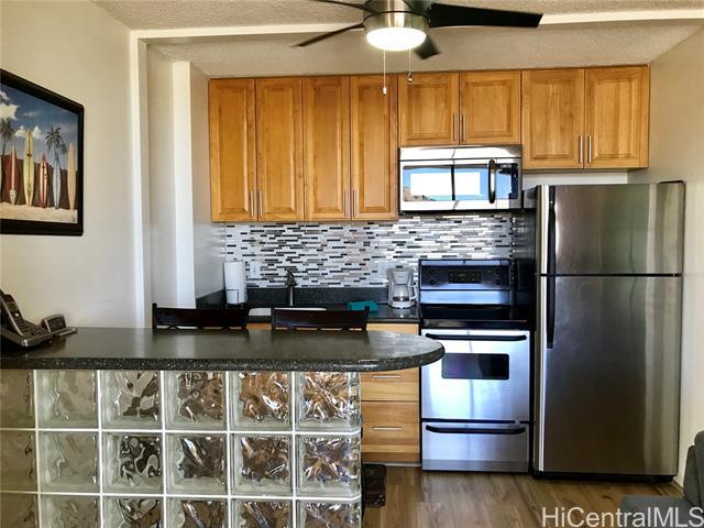 Nicely remodeled 441 sq. feet studio with lanai in Fairway Villa. Fully furnished unit with murphy bed, futon, and cube storage, Vinyl flooring, granite counters, ceiling fan, and travertine shower, microwave, A/C, washer/dryer, & parking stall. Well maintained building w/ 24 hour security, jacuzzi, sauna, pool, and bbq ea. Max. 2 people. No pets or smoking. Includes water, internet and cable. Electricity separate. Great location - near International Marketplace, Waikiki Target, and Waikiki Beach. $2350 per month (includes GET). Unit available now. Please call (leave msg). Thank you.