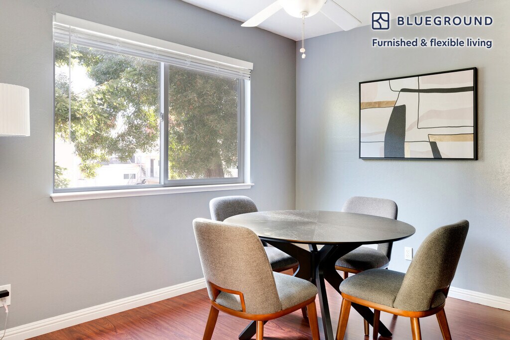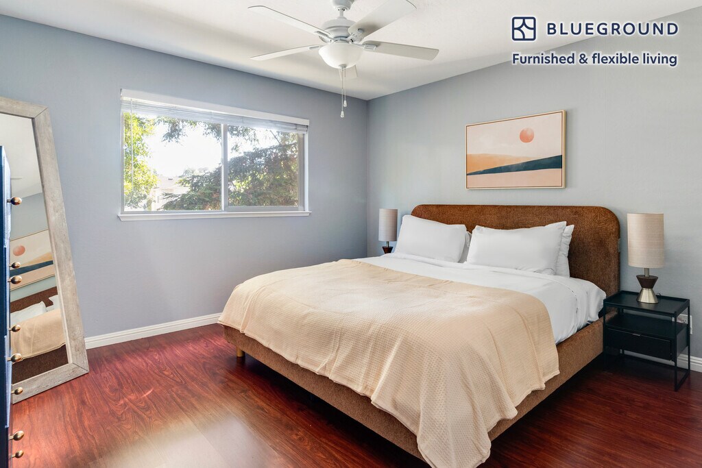Show up and start living from day one in Redwood City with this cozy two bedroom Blueground apartment. You’ll love coming home to this thoughtfully furnished, beautifully designed, and fully equipped Edgewood Park home. (ID #SFO2073) The advertised rate of $3,510/month is the lowest available price, based on a 2 month(s) and 27 day(s) stay with a move-in date of December 11, 2025. If you’re looking for a 1-year stay, the rate is $4,080/month. Rates vary depending on the duration of stay, season, and other parameters. For exact pricing and additional pricing components, please visit our website and enter your desired move-in and move-out dates. The rate is applicable when billed upfront; it can be higher if billed in multiple payments. Brokers are welcome to reach out. Were you looking for an unfurnished lease? Try Blueground instead and upgrade from unfurnished to furnished living: - Furnished at rates comparable to unfurnished - No setup or furniture costs - save thousands - Move-in ready - save time, just bring your suitcase Designed with you in mind Thoughtfully designed with bespoke finishes, modern furnishings, and a fully equipped kitchen, you’ll enjoy that “I’m home” feeling with this Blueground apartment. Whether you’re lounging in your spacious living room streaming the latest and greatest entertainment on the smart TV or premium wireless speaker, or getting some well-earned rest on the superior quality mattress with luxury linens, you’ll fall in love with everything this Edgewood Park apartment has to offer. This apartment also offers in-apartment laundry. Sleeping arrangements King Bed, 70.8in/180cm Queen Bed, 63in/160cm Amenities Building amenities unique to this two bedroom apartment include an on-site: - Dryer - Swimming pool - Washing machine - Parking - Pets allowed Arrival and ongoing support The entire apartment is yours to enjoy! Throughout your stay, you’ll have access to our Client Experience team through the Blueground App. You can schedule additional cleanings, submit maintenance requests, and view our neighborhood recommendations with just a few taps. We’ll share all details upon confirmation of your stay. Other things to note Building amenities may have an extra cost. This Blueground apartment has flexible lease options, allowing you to book it for one month, a year, or more. Pets are welcome, though weight limits and breed restrictions apply and may incur fees. Parking is offered based on availability and is subject to a fee. Please keep in mind that this is a walk up building. We take great pride in ensuring every photo displayed is shot in our own units with our actual furnishings. That said, we regularly refresh our decor and furniture arrangement, which may differ from what’s pictured. [SI]