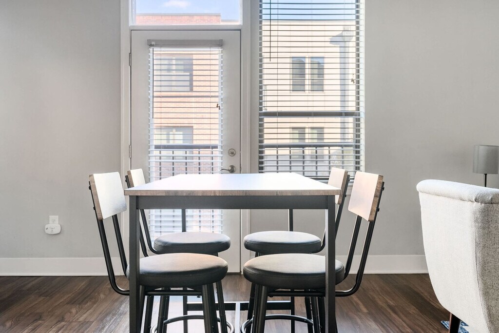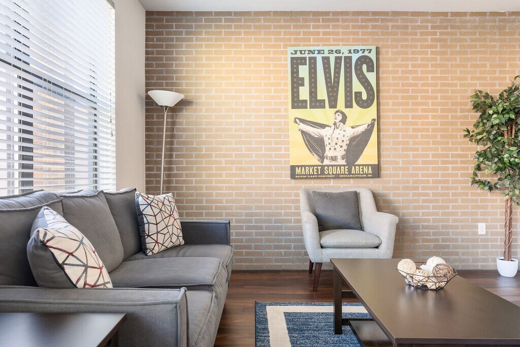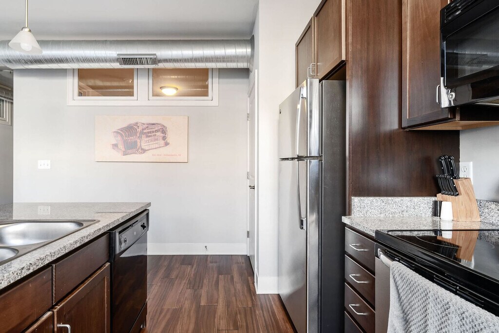 Welcome to this upscale and modern apartment in CityWay, where you can feel at home in the best of downtown Indianapolis. This apartment offers spacious accommodations just steps from top dining, shopping, and attractions like Lucas Oil Stadium, Gainbridge Fieldhouse, and the Indianapolis Cultural Trail. This apartment includes a fully equipped kitchen with everything you need to cook, plus a spacious island with barstools. The bright, open living area features a plush couch and Roku TV. Enjoy the convenience of an in-unit washer and dryer. A sofa is available for extra guests. You’ll get a complimentary parking pass for the attached garage. A pet fee of $20 per night, $100 per week, or $250 per month applies for potty-trained dogs only, preferably under 50 lbs. Experience the best of downtown Indianapolis at Residences at CityWay! With a prime location, you'll have easy access to dining, entertainment, sports venues, cultural attractions, and business districts. Walk to Bankers Life Arena, Lucas Oil Stadium, and the Indianapolis Cultural Trail. Enjoy nearby restaurants, museums, parks, and the lively city atmosphere. Indy offers various convenient transportation options: car, public transit, biking, taxis and ride-sharing, and walking. Quiet hours are from 10pm to 6am, and parties and smoking are prohibited in the property ($1000 fine). Any damage caused by guests must be reported to the host immediately and will be the responsibility of the guest to repair or replace. No pets are allowed without prior authorization, and violating these rules may result in eviction without a refund. Maintenance and inspections may be required during your stay, and we cannot guarantee a specific timeframe or reschedule these visits. Includes two dedicated workspaces. [SI]