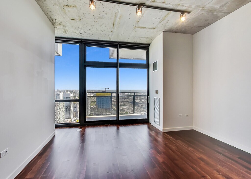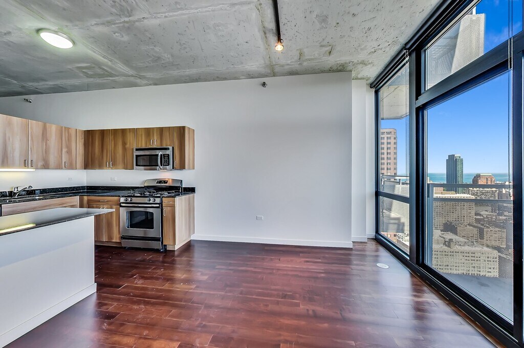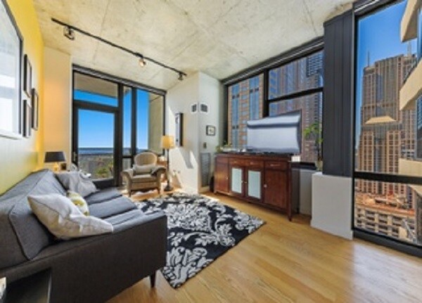 APS91262527 - Schedule your showing today for this stunning two bedroom, two bath unit in the heart of the Loop just steps to the Willis Tower, Urban Space food hall, an attached convenience store and countless additional dining and shopping options. This concrete loft unit features floor to ceiling windows with abundant natural light, modern finishes and a large covered balcony! Cats and small dogs are welcome, and attached garage parking is available for your convenience.