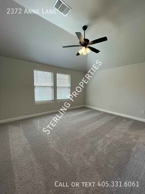 3 bedroom home in the Oasis Ranch community in Blanchard. Open floor design with wood look tile throughout the main living areas and carpet in the 3 bedrooms. Kitchen features stainless steel gas range with built in microwave,pantry and center island for amazing prep space. The master suite is to the back of the home with double vanity,separate garden tub and shower. The secondary bedrooms are to the front of the home complete with ceiling fans. Utility room features a mud bench at the garage entry to the secondary hallway. Covered back patio with large fenced backyard,pet friendly with additional refundable pet deposit.
