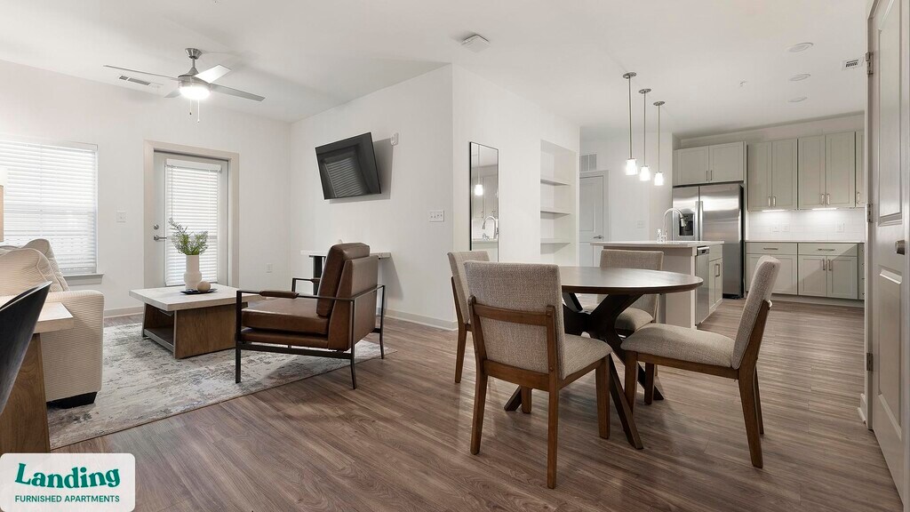 Landing offers flexible lease terms from weeks to months. Please always visit our website or contact us for the latest pricing & availability. Stay longer, save more: 6-Month Minimum base rent: starts at $1552/mo 12-Month Minimum base rent: starts at $1575/mo Landing offers flexible leases across a network of over 35,000 fully-furnished apartments throughout 375+ cities so you can rent on your terms, practically anywhere, and avoid the hassle of paying deposits or application fees. Visit to learn about all the benefits of a Landing membership, see our competitive up-to-date pricing, explore available apartments, take virtual tours, and make reservations online without jumping through traditional rental hoops. Landing's apartments at Arcadia at Waterway Hills are designed for comfortable, easy living, with the ability to stay as long as you like. Experience living with Landing Every apartment is outfitted with all the modern essentials including: custom-designed furnishings, a fully-equipped kitchen with deluxe stainless steel appliances, a gourmet coffee maker, premium linens, Smart TVs, and incredibly fast, reliable internet for working from home. When you live with Landing, you'll enjoy a hassle-free experience with the added benefit of 24/7 access to our dedicated member experience team. Some of the nitty-gritty: a background check and proof of income are required; we're completely smoke-free; bundled utility packages and pricing vary based on length of stay; pet-friendly options available; listed price reflects a 12-month minimum stay.