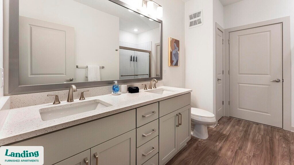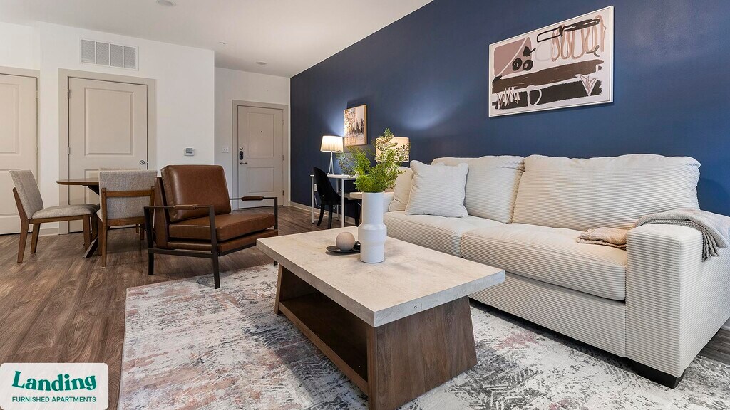 Landing offers flexible lease terms from weeks to months. Please always visit our website or contact us for the latest pricing & availability. Stay longer, save more: 6-Month Minimum base rent: starts at $2385/mo 12-Month Minimum base rent: starts at $1935/mo Landing offers flexible leases across a network of over 35,000 fully-furnished apartments throughout 375+ cities so you can rent on your terms, practically anywhere, and avoid the hassle of paying deposits or application fees. Visit to learn about all the benefits of a Landing membership, see our competitive up-to-date pricing, explore available apartments, take virtual tours, and make reservations online without jumping through traditional rental hoops. Landing's apartments at Arcadia at Waterway Hills are designed for comfortable, easy living, with the ability to stay as long as you like. Experience living with Landing Every apartment is outfitted with all the modern essentials including: custom-designed furnishings, a fully-equipped kitchen with deluxe stainless steel appliances, a gourmet coffee maker, premium linens, Smart TVs, and incredibly fast, reliable internet for working from home. When you live with Landing, you'll enjoy a hassle-free experience with the added benefit of 24/7 access to our dedicated member experience team. Some of the nitty-gritty: a background check and proof of income are required; we're completely smoke-free; bundled utility packages and pricing vary based on length of stay; pet-friendly options available; listed price reflects a 12-month minimum stay.