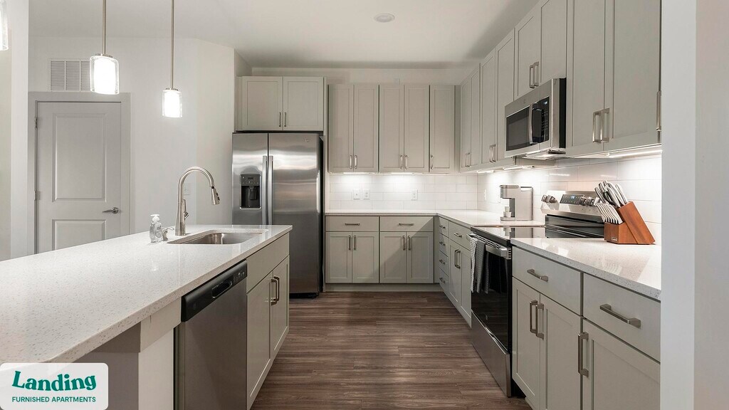 Landing offers flexible lease terms from weeks to months. Please always visit our website or contact us for the latest pricing & availability. Stay longer, save more: 6-Month Minimum base rent: starts at $2865/mo 12-Month Minimum base rent: starts at $2415/mo Landing offers flexible leases across a network of over 35,000 fully-furnished apartments throughout 375+ cities so you can rent on your terms, practically anywhere, and avoid the hassle of paying deposits or application fees. Visit to learn about all the benefits of a Landing membership, see our competitive up-to-date pricing, explore available apartments, take virtual tours, and make reservations online without jumping through traditional rental hoops. Landing's apartments at Arcadia at Waterway Hills are designed for comfortable, easy living, with the ability to stay as long as you like. Experience living with Landing Every apartment is outfitted with all the modern essentials including: custom-designed furnishings, a fully-equipped kitchen with deluxe stainless steel appliances, a gourmet coffee maker, premium linens, Smart TVs, and incredibly fast, reliable internet for working from home. When you live with Landing, you'll enjoy a hassle-free experience with the added benefit of 24/7 access to our dedicated member experience team. Some of the nitty-gritty: a background check and proof of income are required; we're completely smoke-free; bundled utility packages and pricing vary based on length of stay; pet-friendly options available; listed price reflects a 12-month minimum stay.