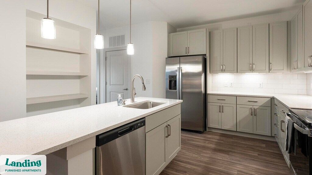 Landing offers flexible lease terms from weeks to months. Please always visit our website or contact us for the latest pricing & availability. Stay longer, save more: 6-Month Minimum base rent: starts at $2100/mo 12-Month Minimum base rent: starts at $1650/mo Landing offers flexible leases across a network of over 35,000 fully-furnished apartments throughout 375+ cities so you can rent on your terms, practically anywhere, and avoid the hassle of paying deposits or application fees. Visit to learn about all the benefits of a Landing membership, see our competitive up-to-date pricing, explore available apartments, take virtual tours, and make reservations online without jumping through traditional rental hoops. Landing's apartments at Arcadia at Waterway Hills are designed for comfortable, easy living, with the ability to stay as long as you like. Experience living with Landing Every apartment is outfitted with all the modern essentials including: custom-designed furnishings, a fully-equipped kitchen with deluxe stainless steel appliances, a gourmet coffee maker, premium linens, Smart TVs, and incredibly fast, reliable internet for working from home. When you live with Landing, you'll enjoy a hassle-free experience with the added benefit of 24/7 access to our dedicated member experience team. Some of the nitty-gritty: a background check and proof of income are required; we're completely smoke-free; bundled utility packages and pricing vary based on length of stay; pet-friendly options available; listed price reflects a 12-month minimum stay.