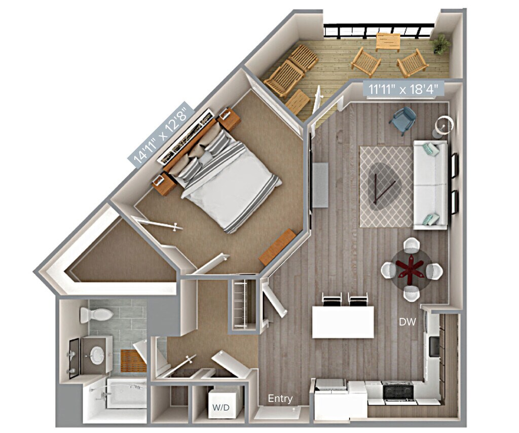 1 Dormitorio, 1 Baño, 815 pies²Disponible Apr 26Galería del Modelo