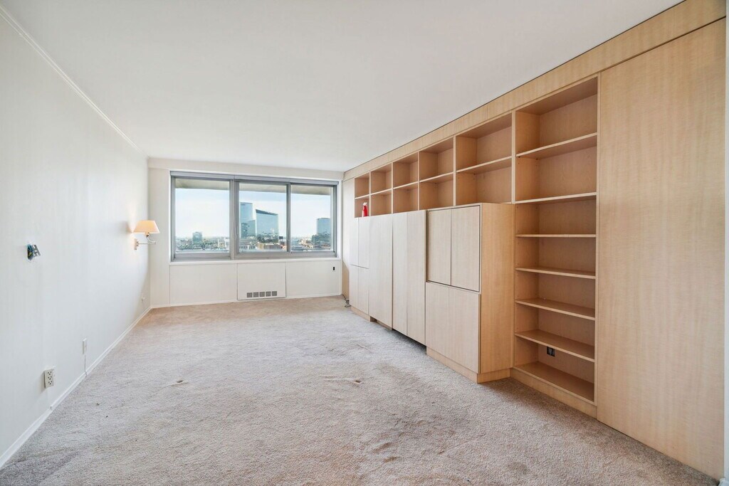 This unit has a lot of pluses that make life in a one-bedroom space more enjoyable. The large living /dining room area has crown molding, an entire wall of custom shelving and access to a balcony. The Philadelphian is known for its closet space. There is a large coat closet in the entrance, another storage closet with custom shelving and a separate laundry room before you even step into the living area. There is custom ceiling lighting throughout. The kitchen has all wood cabinets that include the hidden dishwasher and trash/recycle cans, modern appliances and loads of counter space. The bedroom closet has shelving including a small safe and ample hanging area. The commercial area in the lobby has a bank, pharmacy, restaurant/bar, beauty parlor, grocery store and more. All your needs are just an elevator ride away. All your utilities, indoor/outdoor pool, basic cable. internet and the bus around the city 6 days are included in the rent. Valet garage parking is available on a first come first serve basis for $209/month. The Philadelphian is a no smoking no pet building (except for approved service animals) The unit is vacant and easy to show. Make your appointment today.