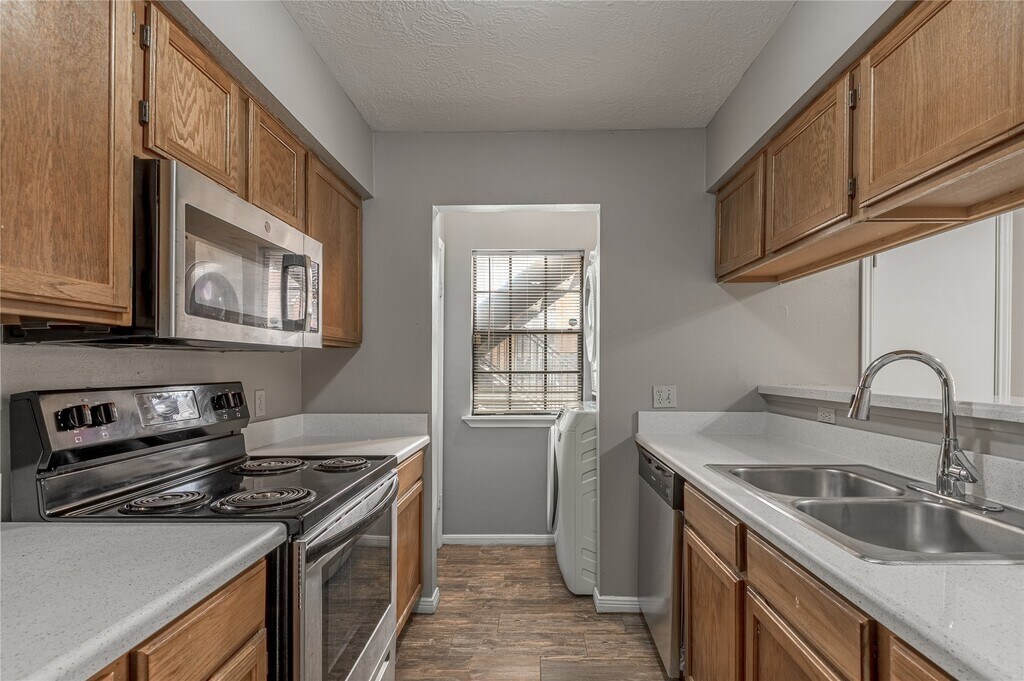Excellent location near Sam Houston State University and easy access to I-45. This ground floor 2 bedroom,2 bath condo has hard surface flooring throughout,updated kitchen with stainless steel appliances,and washer and dryer in unit. MLS# 34690270